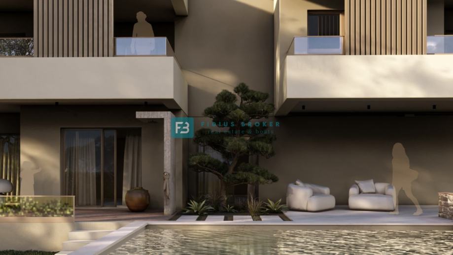 TRIBUNJ, novi projekt, luksuzan stan, prizemlje, bazen, vrt 100 m2 (prodaja)
