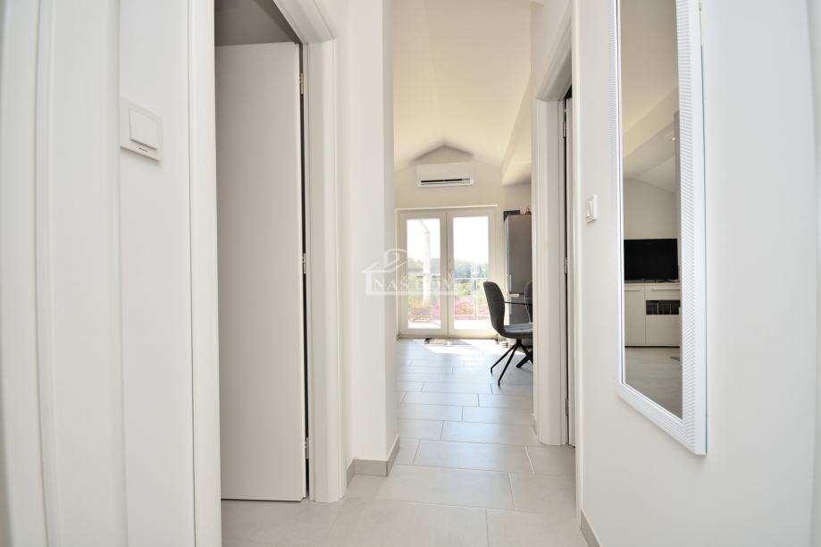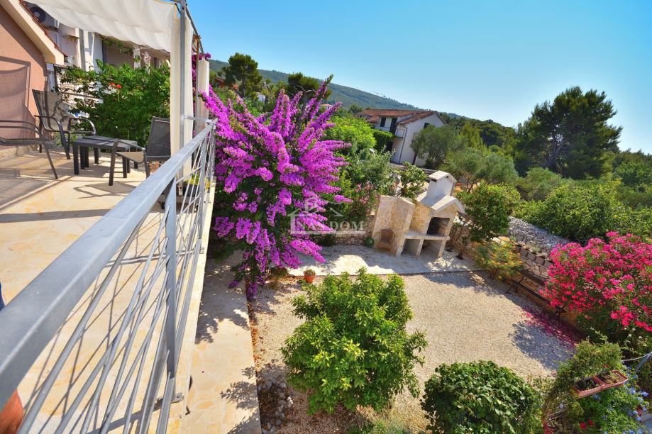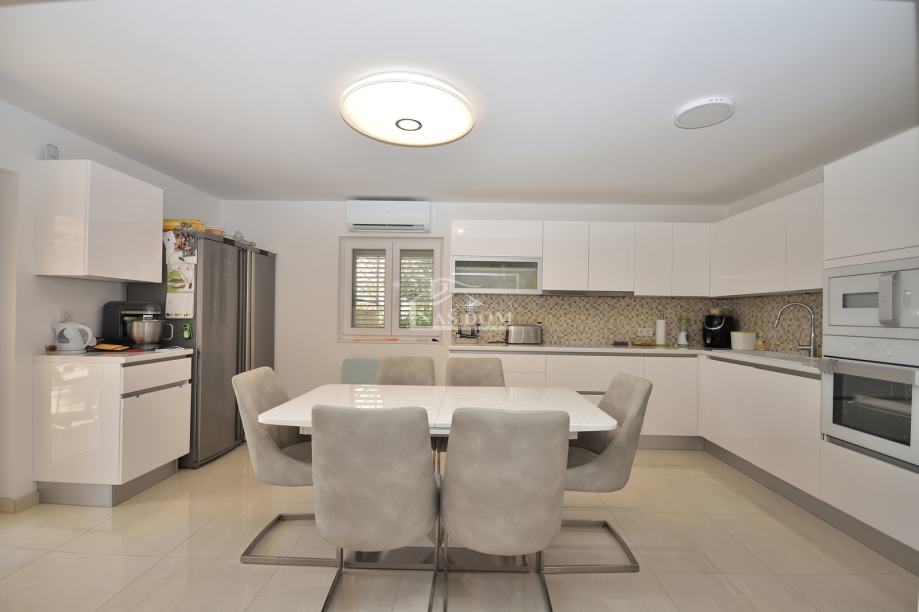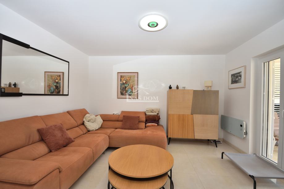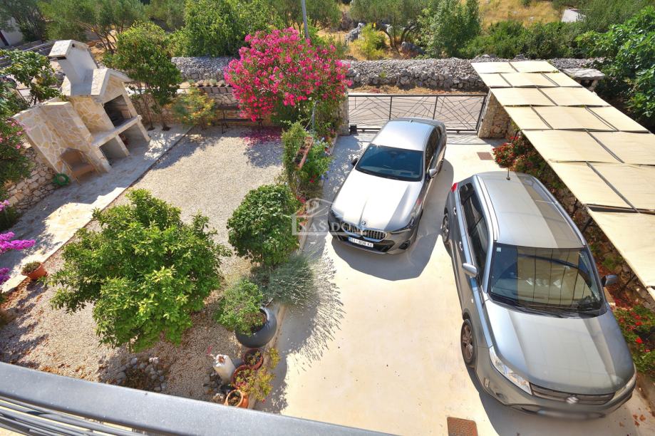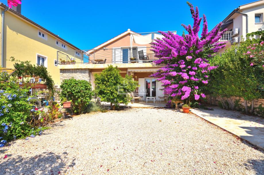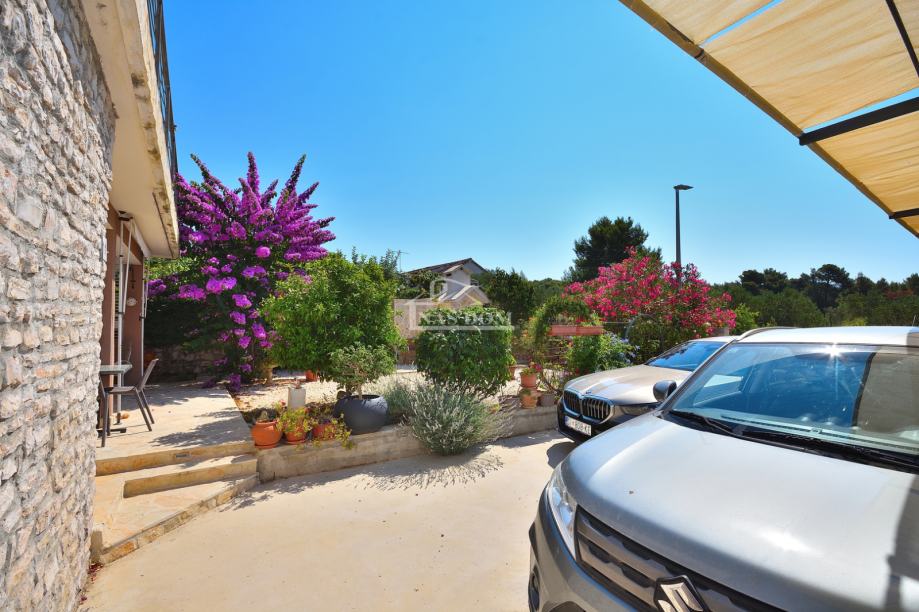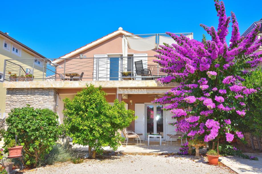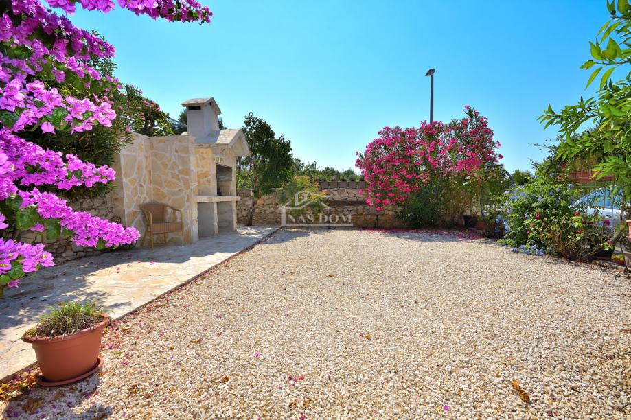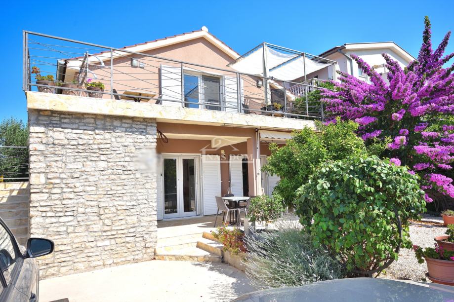 Tribunj, SOVLJE - prodaje se samostojeća kuća s dvije stambene jedinice. Kuća ukupne bruto građevinske površine 129,98m2, tlocrtnih dimenzija 9.57 m*11.29 m ima dvije etaže: prizemlje +kat. U prizemlju se nalazi jedan stan koji se sastoji od ulaz, hodnik, spavaća soba, kupaonica, kuhinja s blagovaonicom i dnevni boravak i terasa. Vanjskim stubištem se ide na kat kuće gdje se nalazi drugi stan koji se sastoji od ulaz, hodnik, dvije spavaće sobe, kuhinja s blagovaonicom i dnevni boravak i terasa. Kuća ima uređenu okućnicu gdje se nalazi roštilj, kamena ostava, vrt kultiviran mediteranskim biljem i prostor za parking.