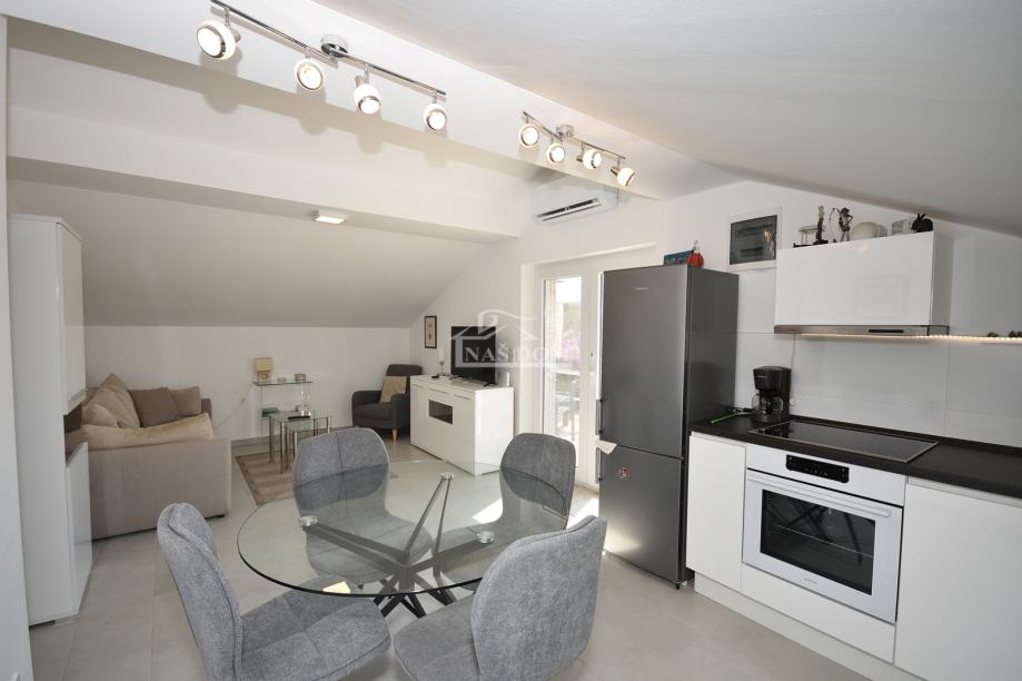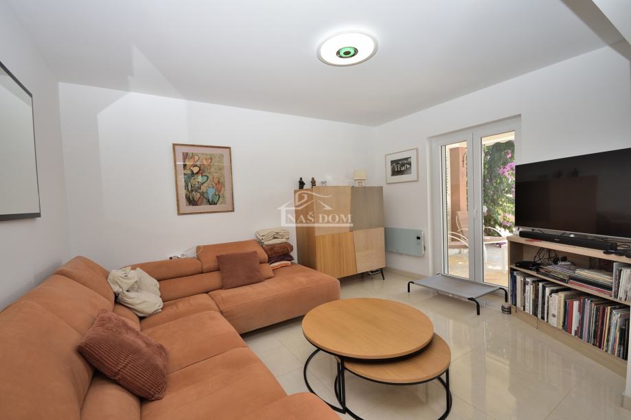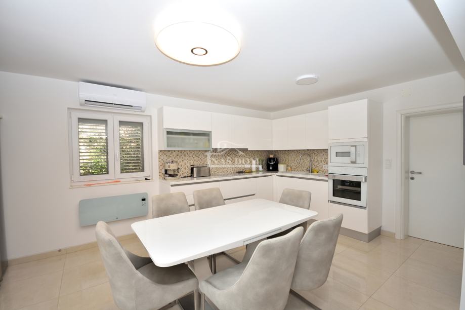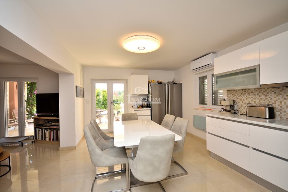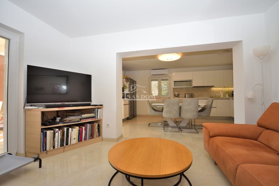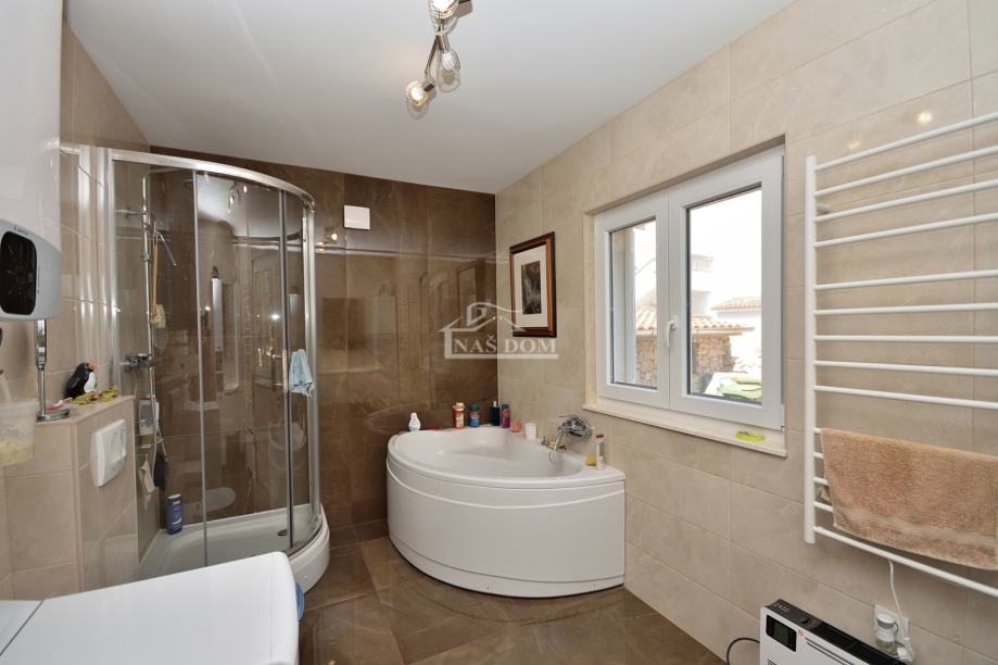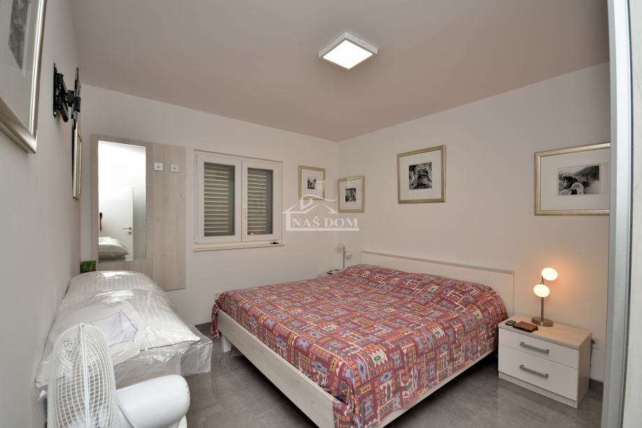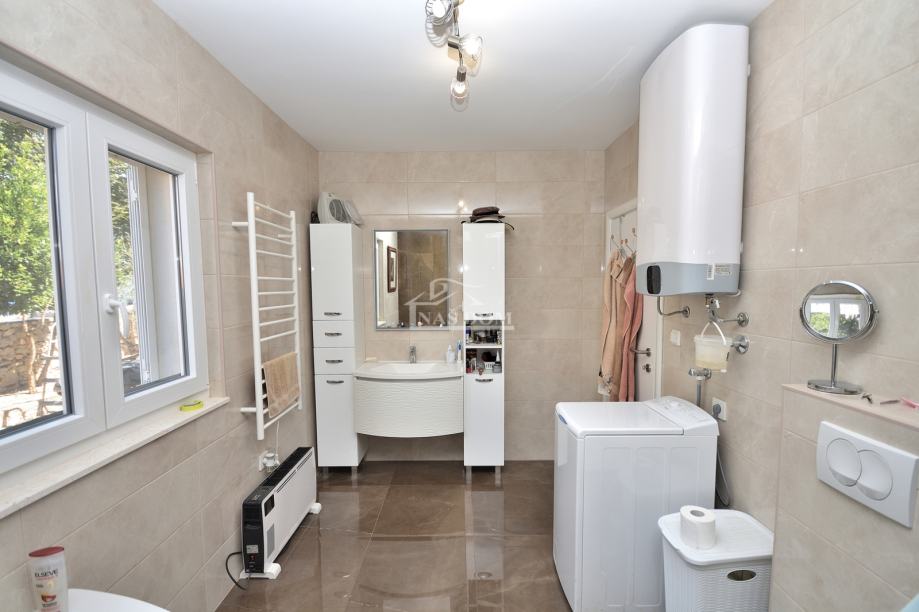 Kuća je sagrađena 80-ih godina, na parceli ukupne veličine od 400m2. Kompletno je renovirana 2020 g kad su napravljeni novi krov, fasada, PVC stolarija, instalacije, podne obloge, zidovi, sobe,kupaonske sanitarije, podno grijanje u većoj kupaonici... Kuća je klimatizirana i kompletno namještena. Nalazi se na mirnoj lokaciji od plaže udaljena oko 200 m a od centra Tribunja oko 1200 m.