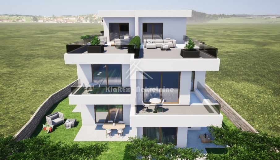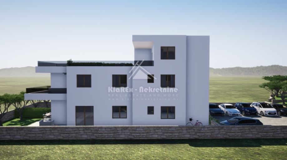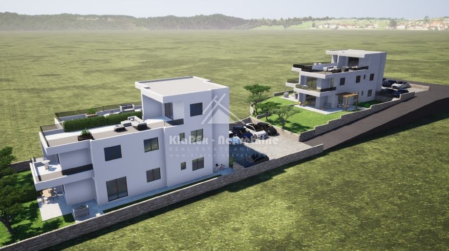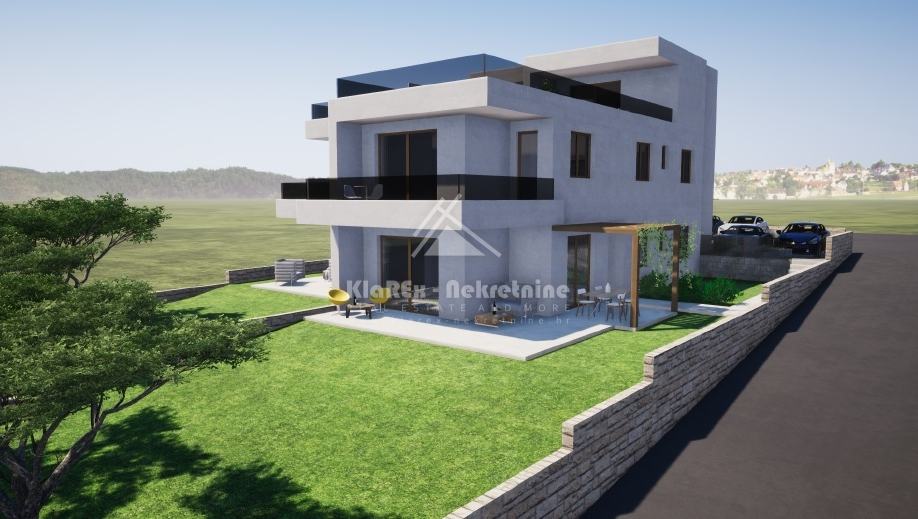 U Tribunju, predio Sovlja se stavljaju u prodaju tri stana u manjoj stambenoj zgradi s ukupno četiri stambene jedinice. Za izgradnju zgrade je izdana pravomoćna građevinska dozvola i trenutno je u fazi izgradnje konstrukcije, odnosno roh-bau fazi. Sama zgrada se gradi poštujući moderne standarde izgradnje, izrazito je zanimljivog dizajna i funkcionalnog rasporeda. Dva stana u prizemlju, od kojih je jedan prodan, su klasični jednoetažni stanovi koji posjeduju i pripadajuće vrtove, dok su ostala dva stana dvoetažni stanovi s pripadajućim krovnim terasama s kojih se pruža prekrasan pogled na more i okolinu. Od opreme i materijala izdvajamo: stiropor fasadu, protuprovalna vrata, PVC stolariju antracit boje, električne podizače roleta s komarnicima, klima uređaje u svim prostorijama, visokokvalitetnu keramiku u svim prostorijama, moderne kupaonske sanitarije, električno podno grijanje u dnevnom boravku i kupaonici. Svaki stan posjeduje po jedno parkirno mjesto, a postoji i mogućnost kupnje dodatnog parkirnog mjesta. Planirani rok završetka radova i useljenje se oćekuju do kraja 2026. godine. Dinamika plaćanja u dogovoru s investitorom. U ponudi je: