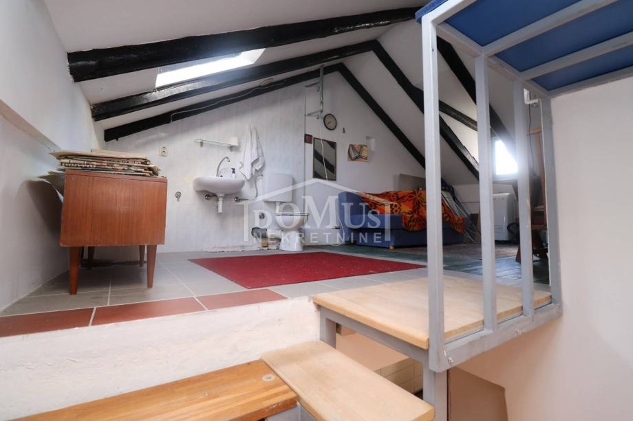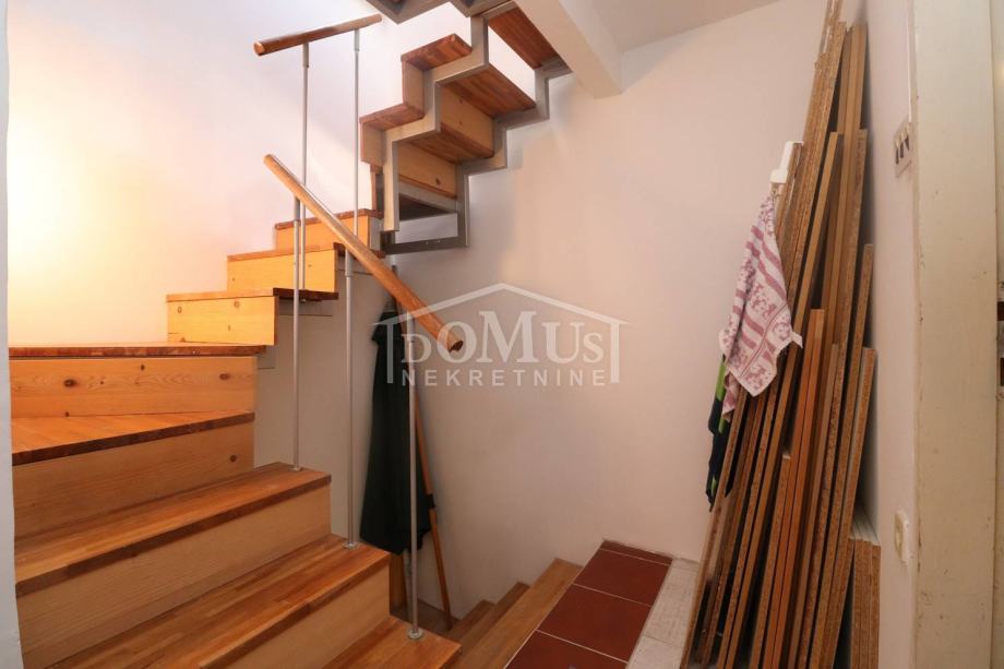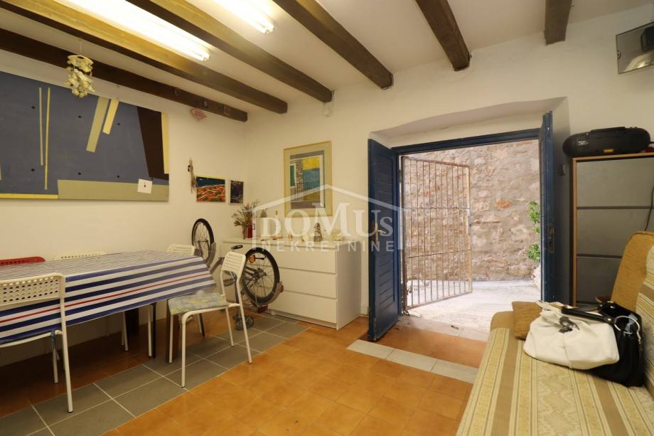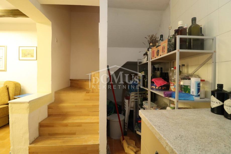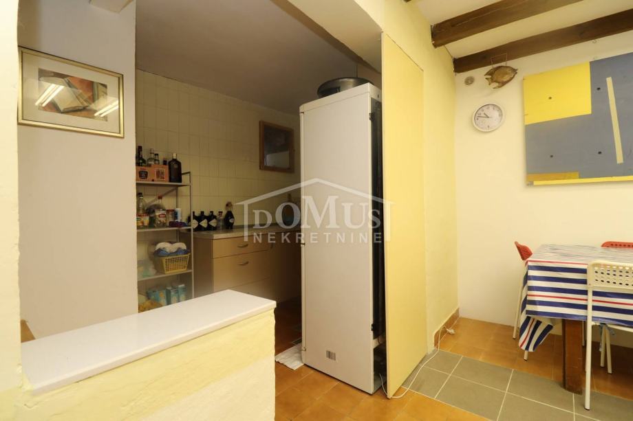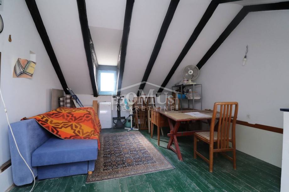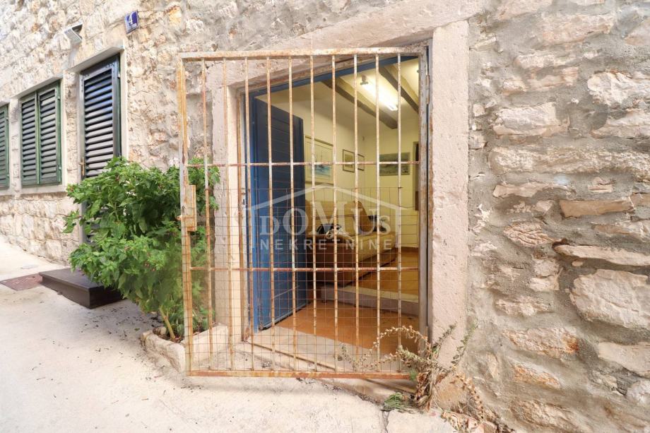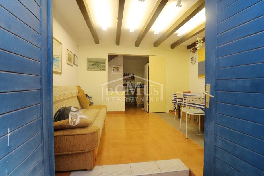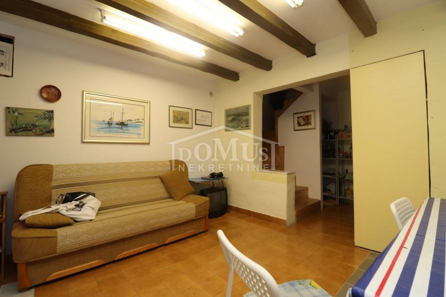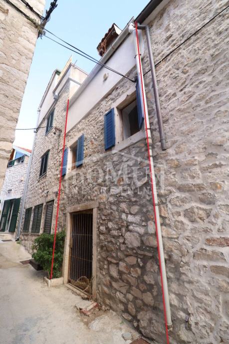 Tribunj, stari dio mjesta / otok, 2.red do mora (15m) renovirana kamena kuća na tri etaže prizemlje + 1.kat + visoko potkrovlje sa ukupno 66m2 stambene površine. Kuća se sastoji od dnevnog boravke te kuhinje i stubišta u prizemlju, na 1.katu je predsoblje, kupaonica i spavaća soba a u visokom potkralju je jedna velika spavaća soba (velika otvorena prostorija) i kupaonica. Kuća je uređena i odmah useljiva. Kuća se nalazi u pješačkoj zoni, s osobni vozilom se može doći na 10 m udaljenosti od kuće, mogućnost parkirna na obližnjem javnom parkiralištu.