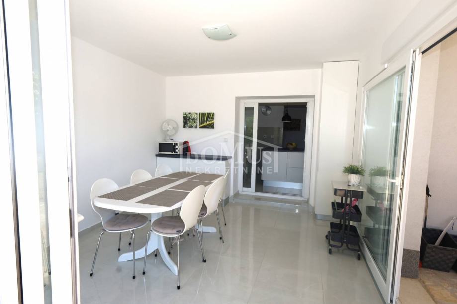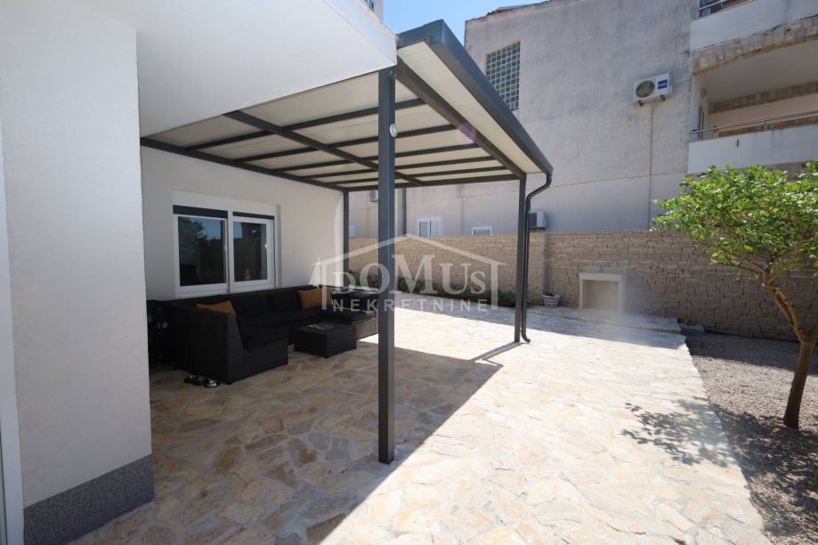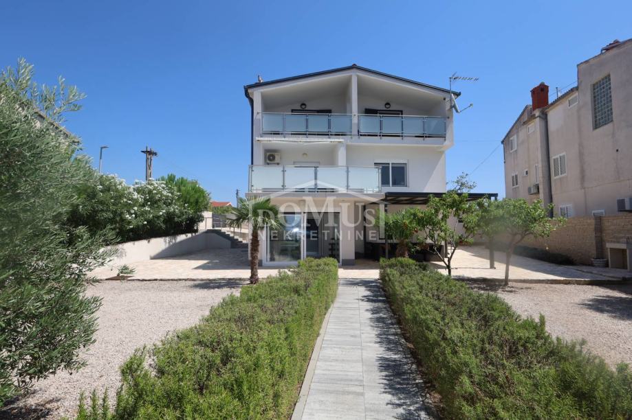 Tribunj, strogi centar, nalazi se obiteljska kuća na dvije etaže sa sveukupnom korisnom površinom od 315,31 m2. Kuća ima 4 stambene jedinice i sastoji se od prizemlja i dva kata. U prizemlju se nalazi apartman S1 od 107,78 m2 koji se sastoji od predsoblja, kuhinje s blagovaonicom, jedne spavaće sobe i kupaone sa WC-om te garaže. Također apartman S1 u prizemlju pripada 125,36 m2 dvorište, roštilj i pomoćni objekt. Na 1. katu se nalazi apartman S2 od 71,80 m2 koji se sastoji od tri spavaće sobe, jedna s izlazom na terasu, kuhinje, i kupaonice sa WC-om. Na drugom katu se nalaze dva jednosobna apartmana S3 -S4 od 31,90 m2 i 31,22m2 sa prostranom terasom. Kuća ima klima uređaj u svim apartmanima, video nadzor, uređenu okućnicu, te se prodaje namještena. Kuću je moguće kategorizirati za turističke usluge. Udaljenost do mora/plaže je 200 m, a do centra mjesta 200 m.
