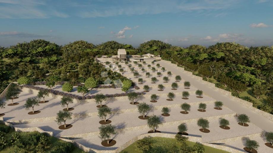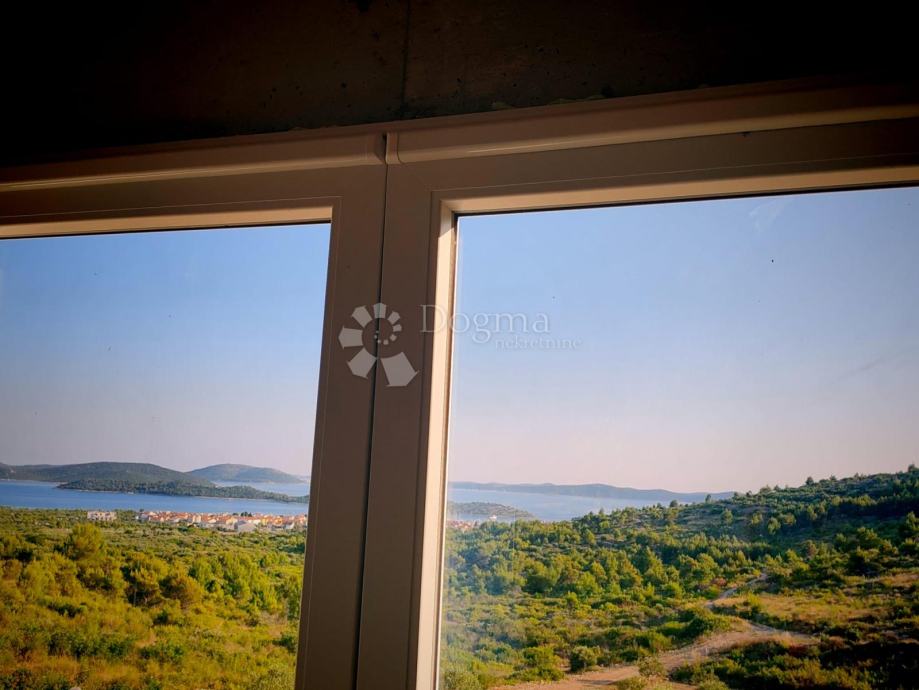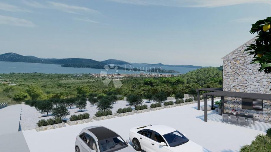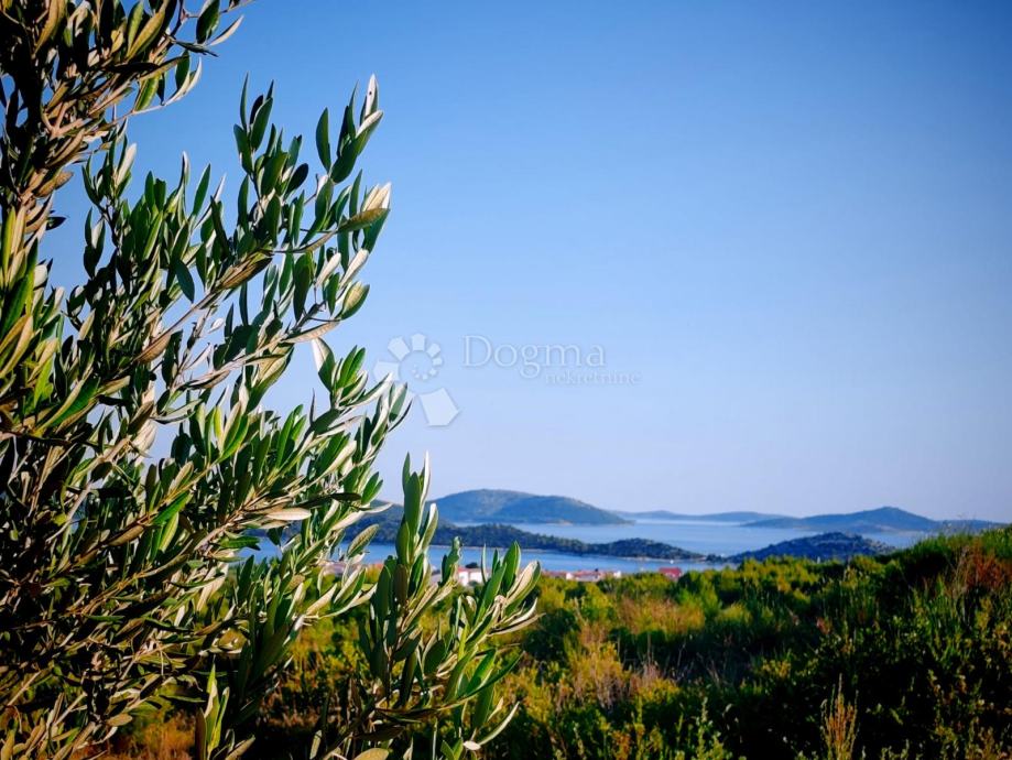 Na prostranoj parceli od 5.019 m², usred mediteranskog zelenila i maslina, pruža se otvoren pogled na modrinu mora i razvedeni niz otoka šibenskog arhipelaga.