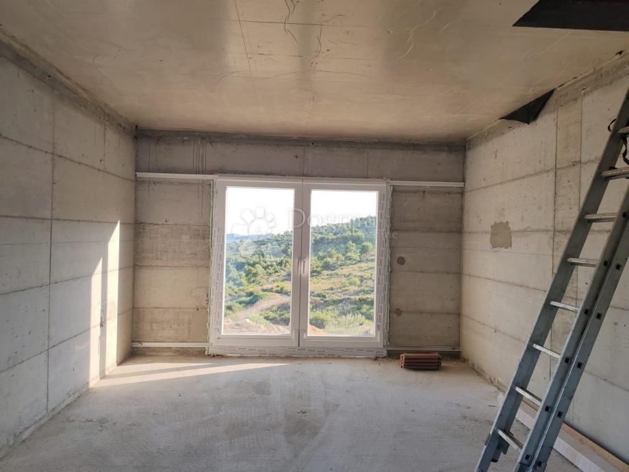 Sama kuća obuhvaća prizemlje, kat i potkrovlje, skladno uklopljena u krajolik, idealna za one koji traže autentičan životni prostor okružen prirodom.