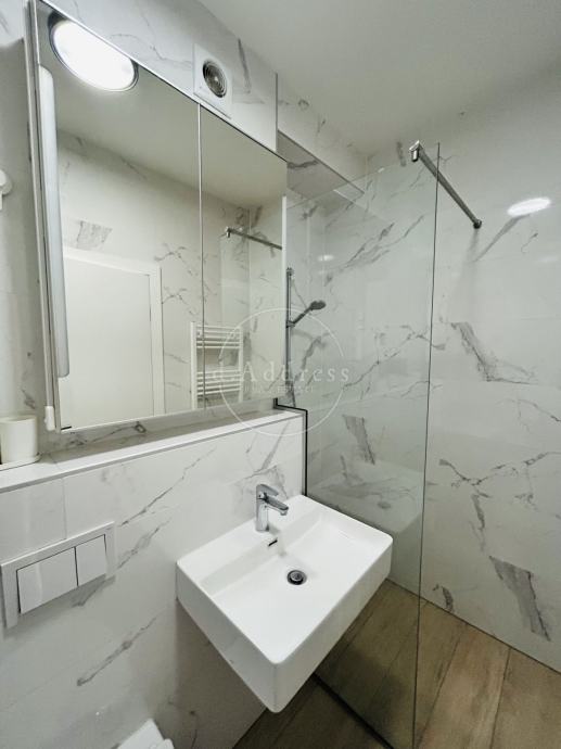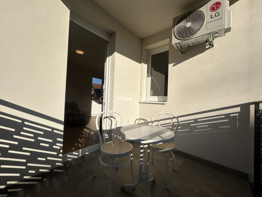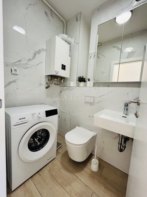 Stan je opremljen svim uređajima, a sastoji se od hodnika, kuhinje s blagovaonicom i dnevnim boravkom, spavaće sobe, kupaonice s walk in tušem te loggie.