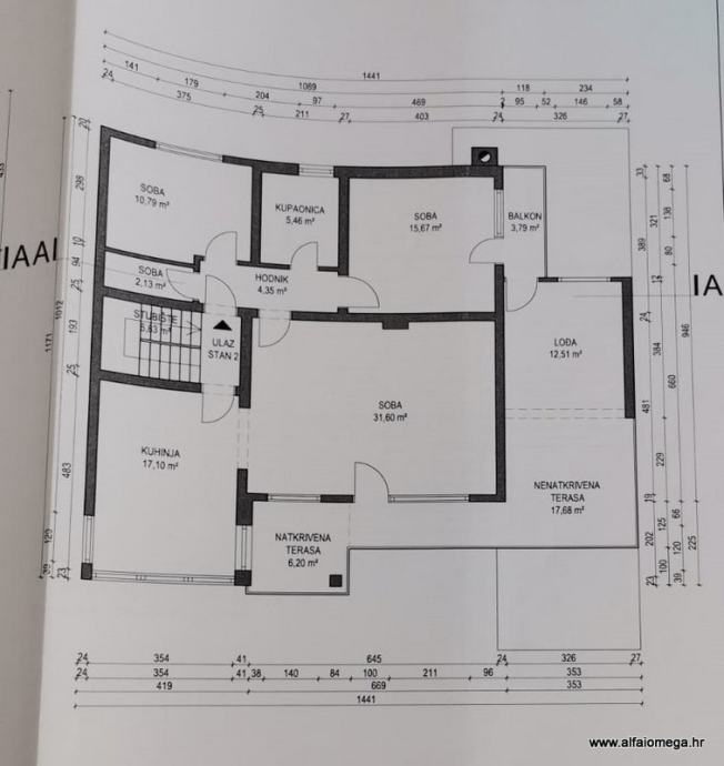 Trosobnog mansardnog stana 82m2 sa natkrivenom terasom