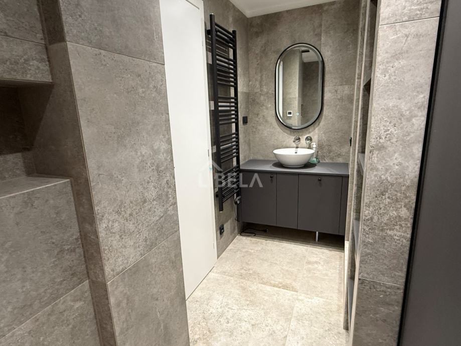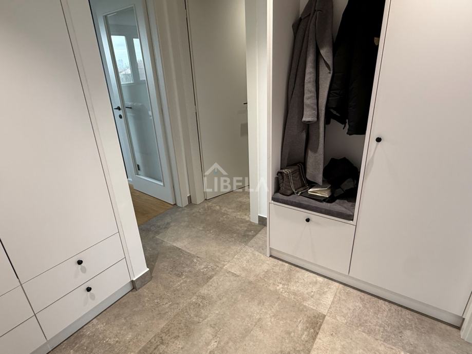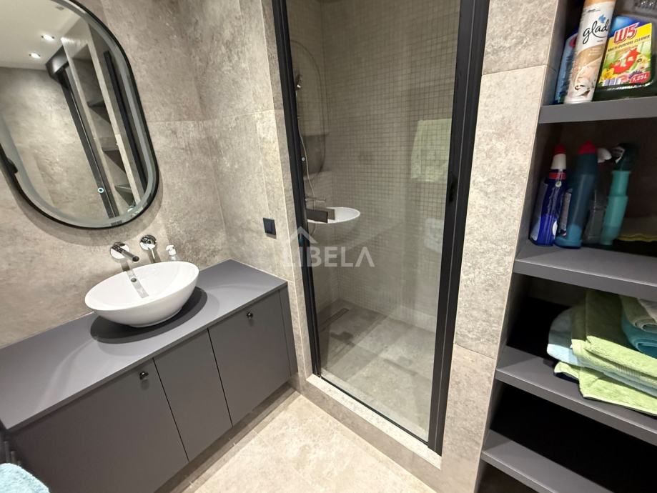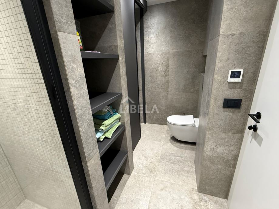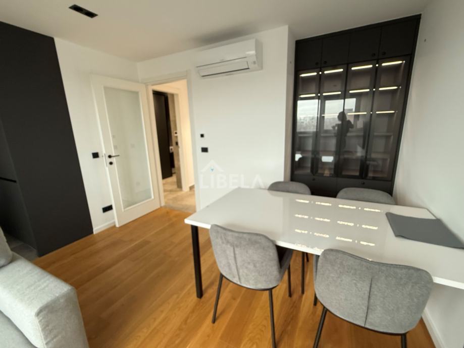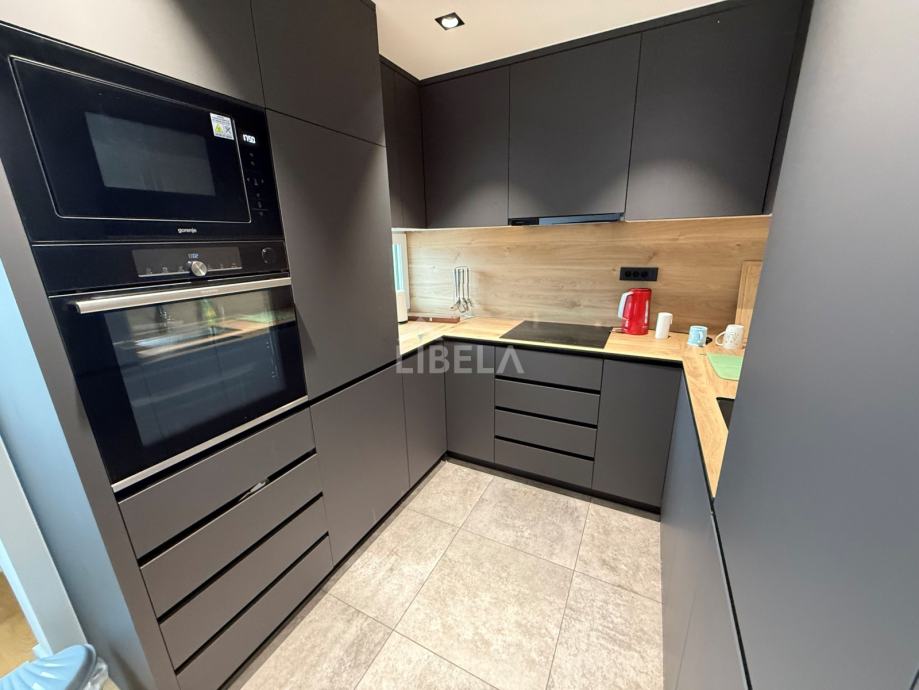 Stan je potpuno opremljen, (svi kuhinjski aparati) perilica rublja i sušilica, mikrovalna pećnica, 2 klima uređaja (dnevni boravak i spavaća soba), podno grijanje, optički internet.