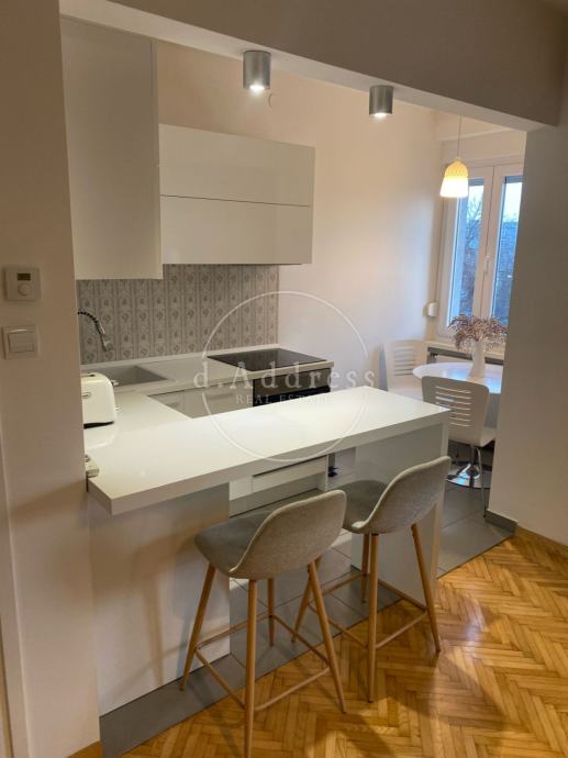 Iznajmljujemo potpuno namješten dvosobni stan na 3. katu zgrade bez lifta u Trnjanskoj ulici.
