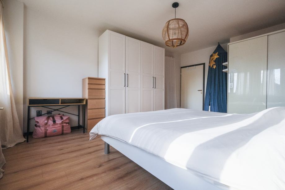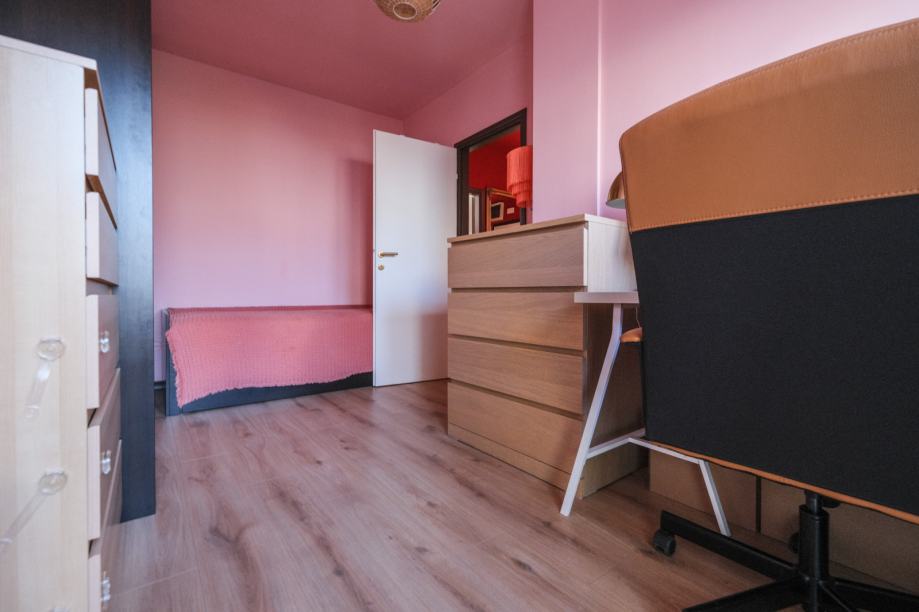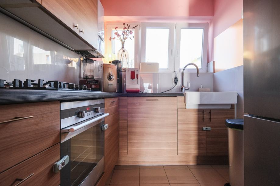 Raspored je izuzetno funkcionalan: prostrani dnevni boravak, velika spavaća soba, dodatna soba pogodna za radni prostor ili dječju sobu, moderna kupaonica i hodnik s ugradbenim ormarima. Stan ima dva balkona, jedan orijentiran na jug i drugi na sjever. Mogućnost korištenja spremišta.