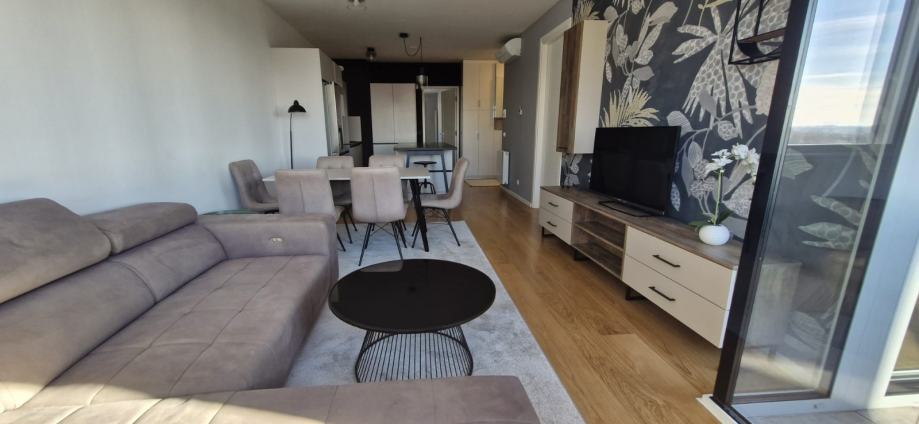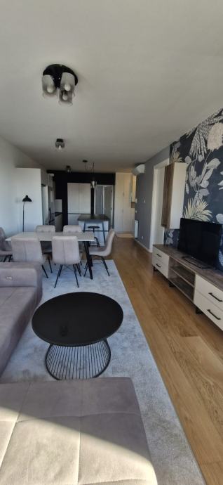 Iznajmljujemo stan 82m2, orjentacija istok-zapad, 2spavace sobe, 2 kupaonice, kuhinja, blagovaona, dnevni boravak, 2 lože, veliko spremiste i parkirno mjesto u garazi.