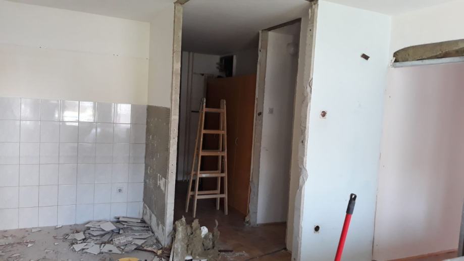Stan je djelomično renoviran unazad 2-4 god. A uređeno je: Parketi brušeni i lakirani, promijenjena unutarnja stolarija (vrata), vanjska stolarija PVC, protuprovalna vrata, postavljen klima uređaj, kompletno promijenjeni kablovi struje kroz cijeli stan i novi automatski osigurači + pomicanje rasvjetnih tijela, dodavanje utičnica, novi prekidači. Zidovi brušeni, gletani, Neke preinake što se tiče pregradnih zidova, nove pločice postavljene u kuhinji, hodniku i špajzi.