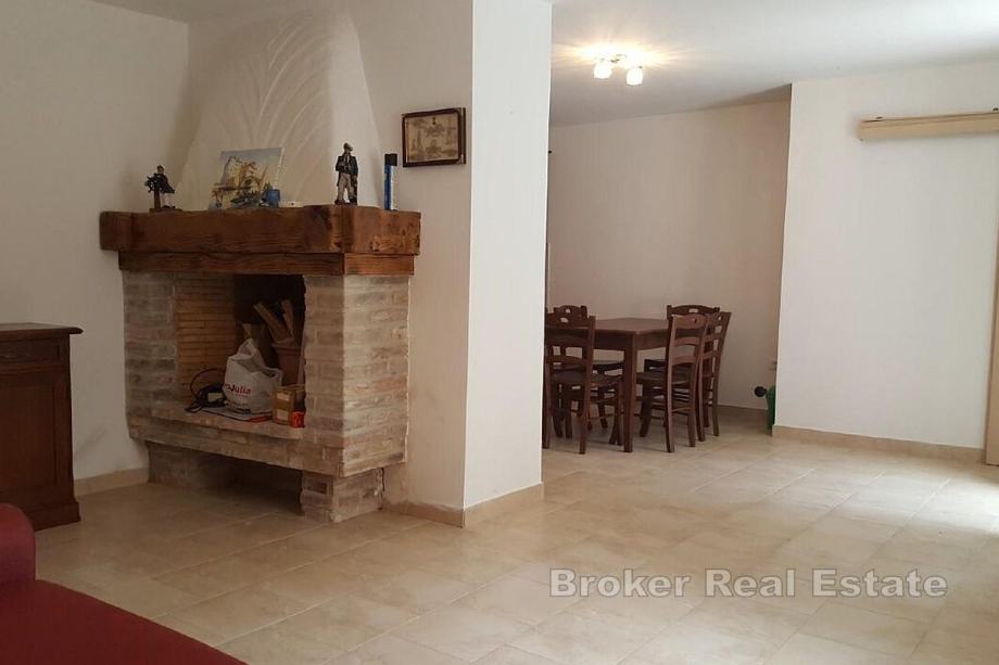 Vanjski prostor odnosno uredno i popločano dvorište zauzima prostor od oko 30m2. Kuća je povijesna građevina a kompletno je renovirana i adaptirana 2015. godine.