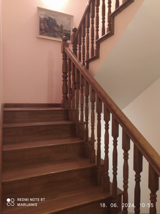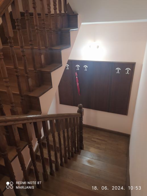 Prvi kat: veliki dnevni boravak, kuhinja s blagovaonicom, kupaonica, hodnik i balkon.