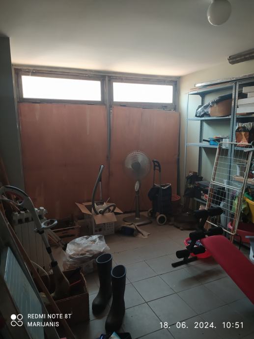 Prizemlje: prostrani hodnik, soba (namijenjena za radnu sobu), kupaonica, ostava, garaža i stubišni prostor.
