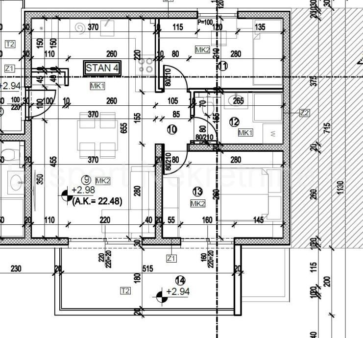 Zgrada se nalazi na mirnoj i tihoj lokaciji samo 900 m udaljena od centra grada te blizu trgovačkog centra Plodine.Početak radova je planiran na proljeće 09/2026.g a završetak je planiran 18 mjeseci nakon početka gradnje. Kvalitetna oprema( invreter klima,podno grijanje u kupaonici,šestkomorna pvc stolarija,kvalitetna keramika.protuprovalna vrata, termofasada,...itd) . Plaćanje po fazama gradnje.