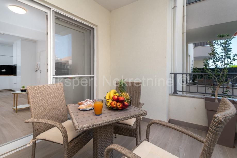 Najam novog dvosobnog stana 69 m2 na izvrsnoj lokaciji u Trogiru. Stan je novije gradnje (2022g.) i malo je korišten te se nalazi u neposrednoj blizini centra (350m ). Stan ima dvije spavaće sobe, hodnik,kupatilo,kuhinju sa blagavaonicom i dnevnim boravko lođu (8.5 m2) te veliki vrt 124 m2 te mu pripadaju dva parking mjesta. Stan je u potpunosti namješten novim i modernim namještajem te je opremljen za useljenje.Stan ima podno grijanje,kao i klimu u svakoj prostoriji, komarice na prozorima,električne rolete,itd...) .Odlična lokacija blizu centra grada,i svih ostalih sadržaja( ,banke, trgovine, tržnica,ribarnica,stara gradska jezgra Trogira itd...).