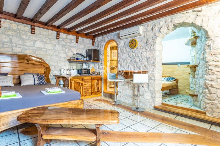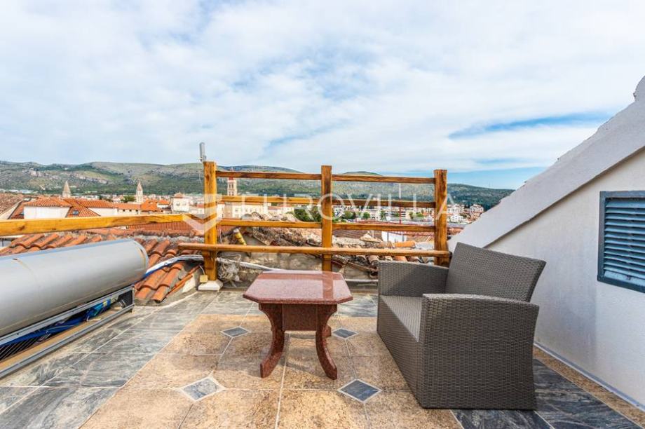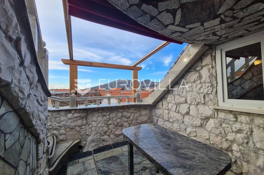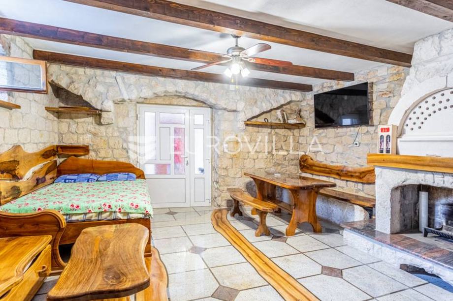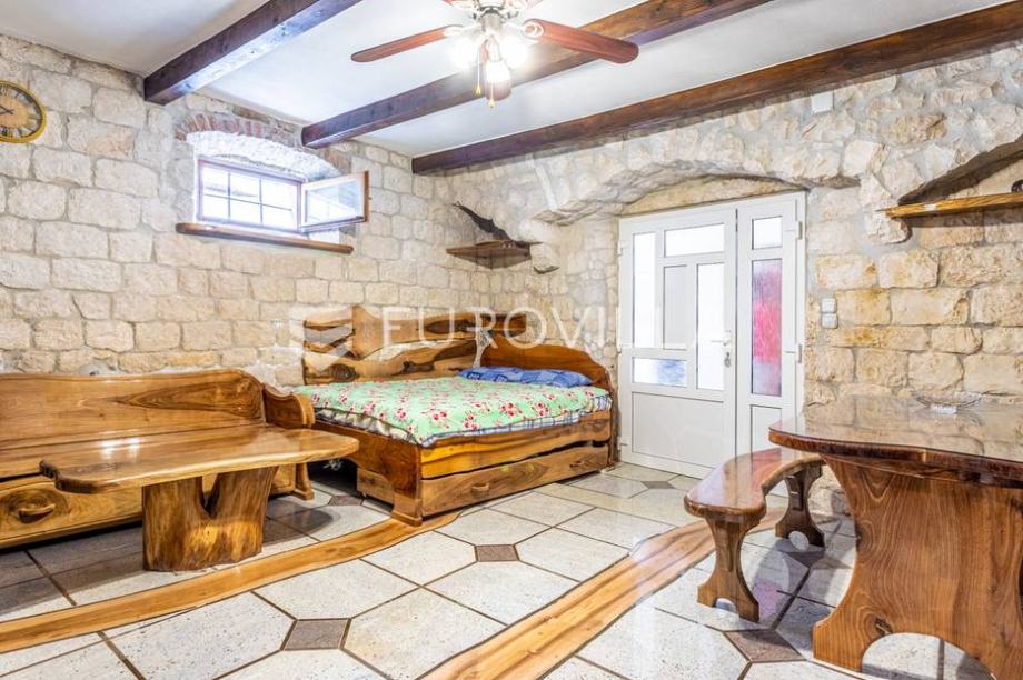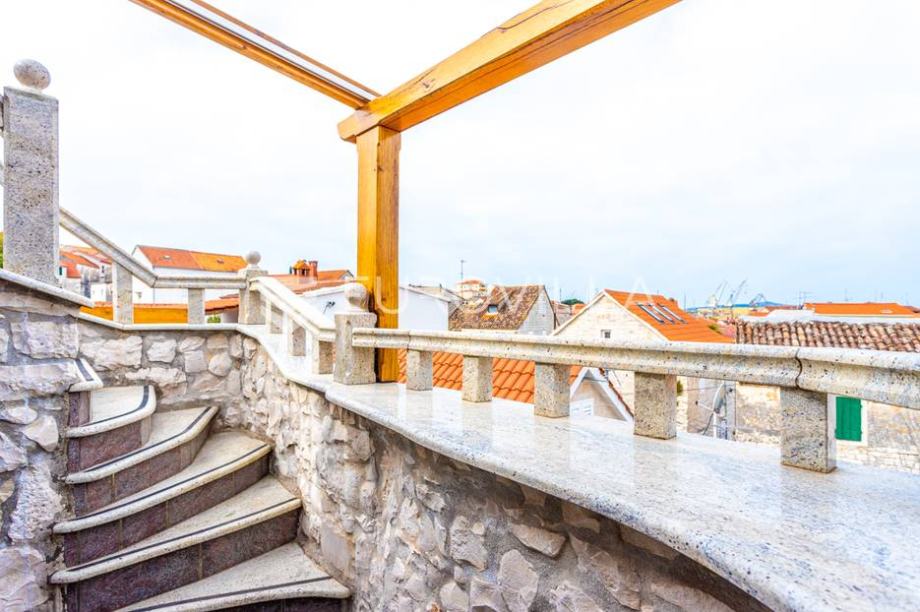Kamena kuća u nizu (dva ulaza) na vrlo atraktivnoj lokaciji, smještena nadomak trogirskog mosta na Čiovu, okružena uređenim kamenim kućama, u samoj staroj jezgri ovog povijesnog mediteranskog grada.Procjenjuje se da kuća ima čak 500 godina povijesti.Ukupne je površine cca. 140m2...