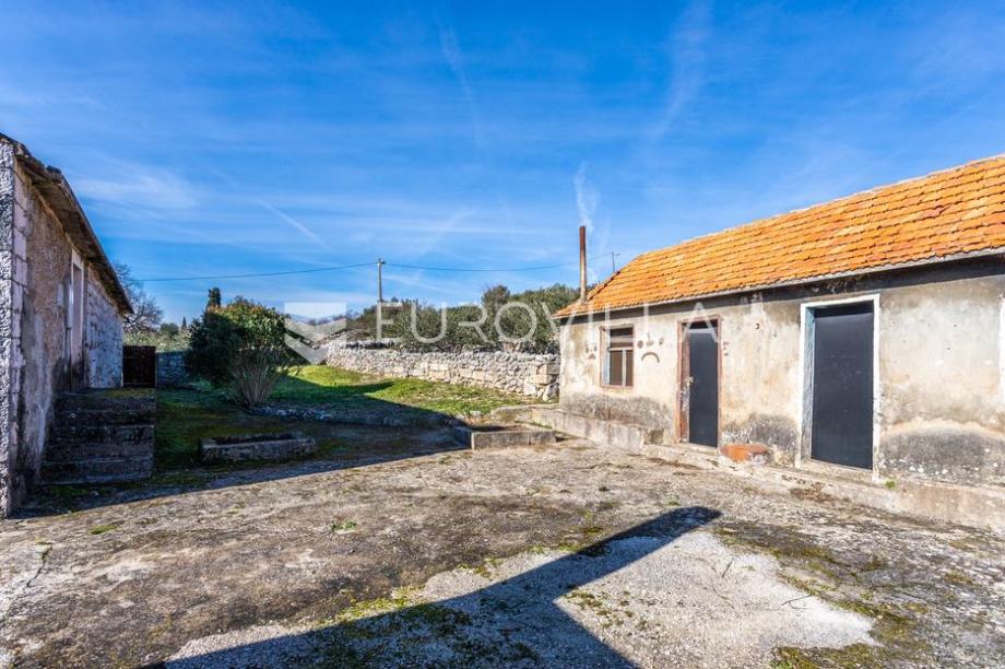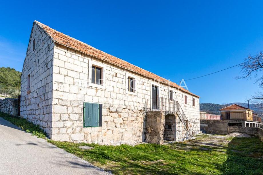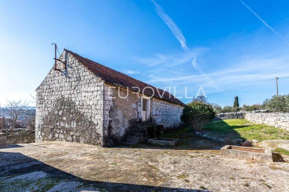 Autohtono dalmatinsko imanje u mirnom mjestu nadomak Trogira – tri objekta na površini od 1200 m2. Glavni objekt je kamena kuća s prizemljem, katom i mogućim potkrovljem tlocrtne površine 135 m2 po etaži. Drugi objekt površine 45m2 i treći, pomoćni objekt površine 17 m2. Svi objekti...