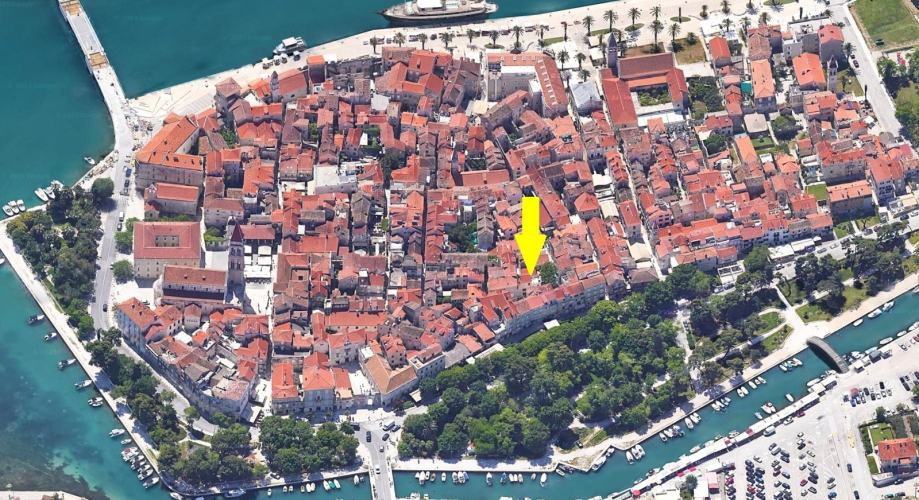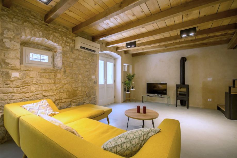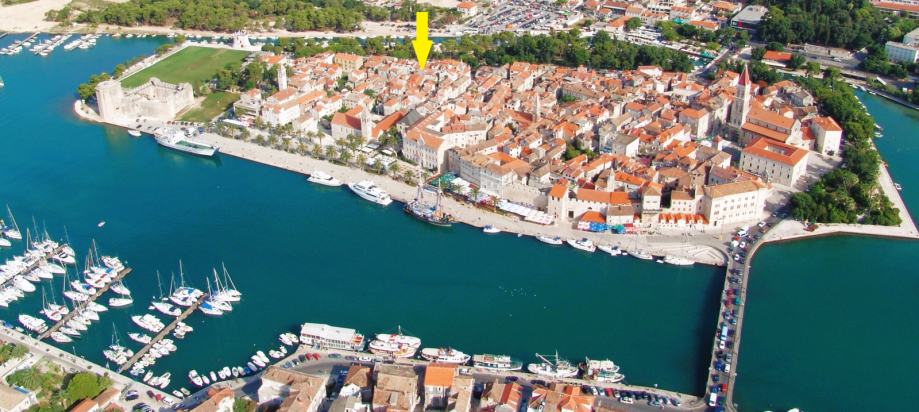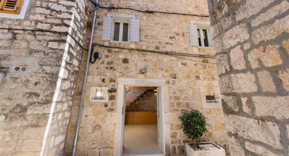 Prekrasna 300 godina stara kamena kuća na 4 etaže + galerija, smještena u srcu stare jezgre Trogira pod zaštitom UNESCO-a, površine cca 120 m2, koja se sastoji od dnevnog prostora i WC-a u prizemlju, veće spavaće sobe i kupaonice na katu, dvije manje sobe i kupaonice na 2. katu, te kuhinje s blagovanicom sa izlazom na terasu pov. 14 m2 te galerijskim prostorom/mezaninom iznad, koji se koristi kao radni prostor, djelomičan pogled na more i staru jezgru, rekonstruirana u skladu s najstrožim konzervatorskim smjernicama, uz korištenje najkvalitetnijih materijala, rijetko na tržištu.