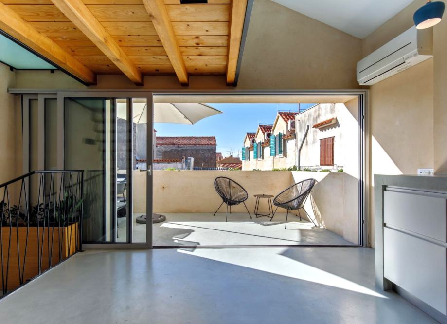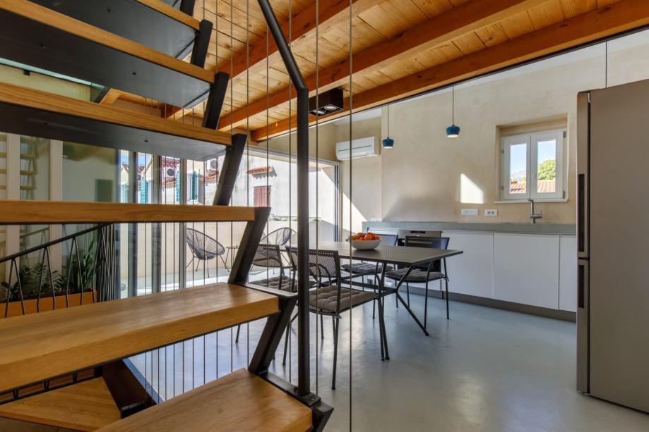 Beautiful 300 year old stone house on 4 floors + mezanine, located in the heart of the old town of Trogir under the protection of UNESCO, of approximately 120 m2, consisting of living room and toilet on the ground floor, larger bedroom and bathroom upstairs, two smaller rooms and bathrooms on the 2nd floor, and a kitchen with dining area with access to the terrace of 14 m2 and a gallery space / mezzanine above which is used as a working space, partial sea view, reconstructed in accordance with the strictest conservation guidelines, using the highest quality materials, rarely on the market.