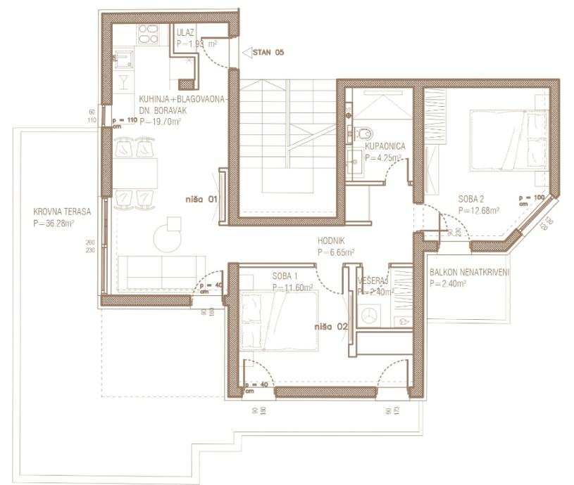 - krovna terasa 36 m2