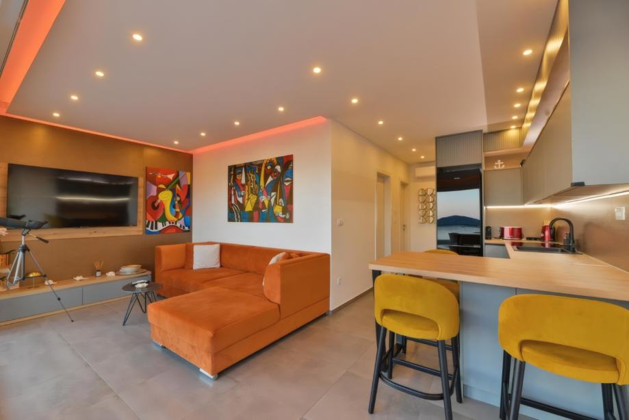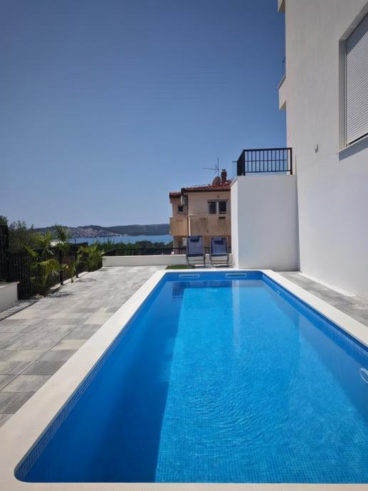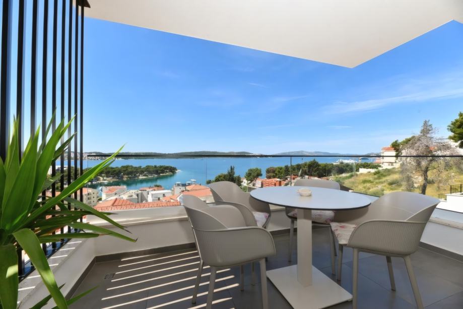 Na prodaju je luksuzni, novoizgrađeni penthouse smješten na drugom katu moderne, manje zgrade na mirnoj lokaciji na otoku Čiovu, u neposrednoj blizini Trogira. Nekretnina se ističe vrhunskim dizajnom, udobnošću i jedinstvenim mediteranskim ugođajem, uz spektakularan pogled na more.