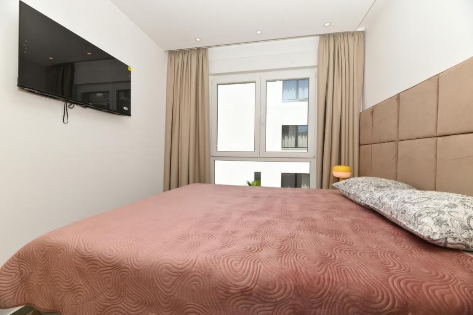 Stan je u potpunosti opremljen modernim namještajem i aparatima najviše kvalitete, u potpunosti klimatiziran i s ugrađenim podnim grijanjem. U prizemlju zgrade na raspolaganju je zajednički bazen. Cijena uključuje vanjsko parkirno mjesto i garažno mjesto.
