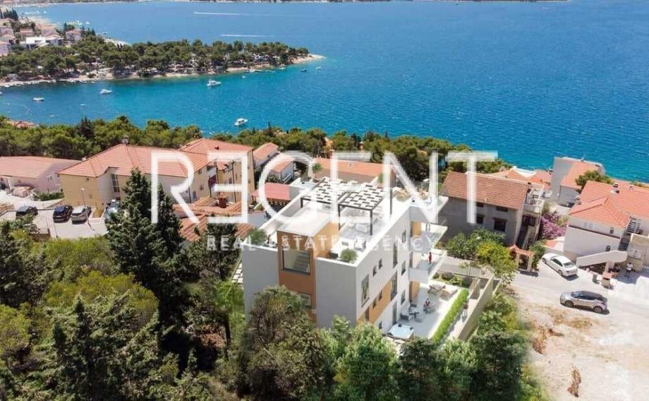 Na Čiovu, u mjestu Okrug, u prizemlju stambene zgrade sa šest stambenih jedinica, nalazi se dvosoban stan ukupne stambene površine 55,2 m2.Stan se sastoji: od dvije spavaće sobe površine 9,04 m2 i 9,80 m2, dvije kupaonice površine 3,30 m2, hodnika površine 2,35 m2 te kuhinje/dnevnog boravka površine 23,6 m2. Vanjski dio stana obuhvaća natkrivenu terasu površine 19,20 m2, nenatkrivenu terasu 10,7 m2 te dva vrta površine 54,8 i 8,6 m2.Oprema zgrade obuhvaća najkvalitetnije materijale: Vanjski zidovi i zidovi stubišta su armirano – betonski, a međukatna konstrukcija je armirano – betonska ploča debljine 17 cm. Unutarnji prostori u stanovi su pregrađeni gips-kartonskim zidovima koji su gletani i bojani disperzivnim bojama u bijeloj boji. Visina stropa je 263 cm. Toplinsko izolacijski sustav “ETICS” s toplinskom izolacijom od stiropora debljine 10 cm s svi završni slojevi. Svi vanjski prozori izrađeni su od višekomorne PVC stolarije s termo kočnim mostom i IZO LOWE staklo (štedi gubitak energije kroz staklo 60 % više nego IZO staklo). Staklo je višeslojno. Na svim vanjskim prozorima postavljene su ALU rolete. Kupaonska i WC oprema je izrađena od keramike i akrilne sanitarije. Jedan od mogućnosti grijanja i hlađenja stanova bit će klima uređaj.Ova nekretnina nudi izuzetno uređeno zajedničko stubište obloženo kamenom, s automatskim gašenjem svjetla za dodatnu sigurnost i uštedu energije. Planirana LED rasvjeta u stubištu dodatno doprinosi energetskoj učinkovitosti. Okolina objekta obuhvaća privatna parkirna mjesta, hortikulturno uređene površine i komunikacijske prometnice, sve izvedeno prema visokim standardima uređenja.Vlasnici apartmana će imati pristup zajedničkoj okućnici koja omogućava postavljanje roštilja, stolova, stolica ili drugog vrtnog namještaja. Također, postoji mogućnost uređenja dječjeg igrališta prema željama stanara. Ova nekretnina pruža savršenu kombinaciju udobnosti, funkcionalnosti i estetike, prilagođenu potrebama modernog stanovanja.Lokacija: Zračna udaljenost objekta od mora je 150 m, a pješačka udaljenost ili autom je 200 m. Zgradu karakterizira izvrsna povezanost sa svim važnim mjestima u gradu Trogiru: stari most 10 minuta hoda, zračna luka 10 minuta autom, autobusna stanica 5 minuta hoda, trgovina 5 minuta hoda, plaža 5 minuta hoda. Zgrada je južno orijentirana, te je osunčana cijeli dan, a ujedno nudi i prekrasan pogled na zaljev, pučinu, Okrug, otok Šoltu i ostale znamenitosti. Vila se nalazi u slijepoj ulici bez puno prometa i buke, a iza zgrade ima zelenila i šume što daje dodatnu vrijednost kvaliteti života i odmora.Stanu pripada jedno garažno parkirno mjesto. Vanjsko parkiralište i zajednički prostor biti će pokriveni video nadzorom, osiguravajući maksimalnu sigurnost i zaštitu imovine svih stanara. S modernim sigurnosnim sustavom, stanari mogu biti sigurni da je njihova imovina uvijek pod nadzorom, što doprinosi osjećaju sigurnosti i bezbrižnosti.Za više informacija slobodno nas kontaktirajte!Za više informacija, kontaktirajte našeg agenta na brojeve telefona: