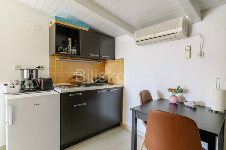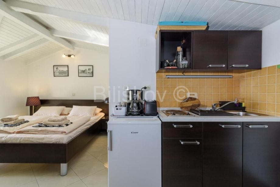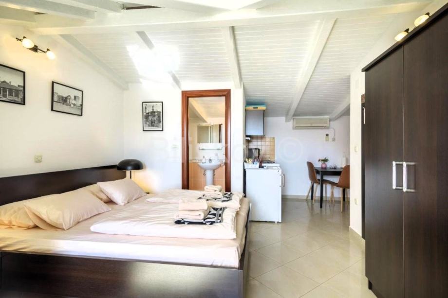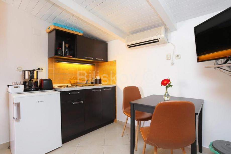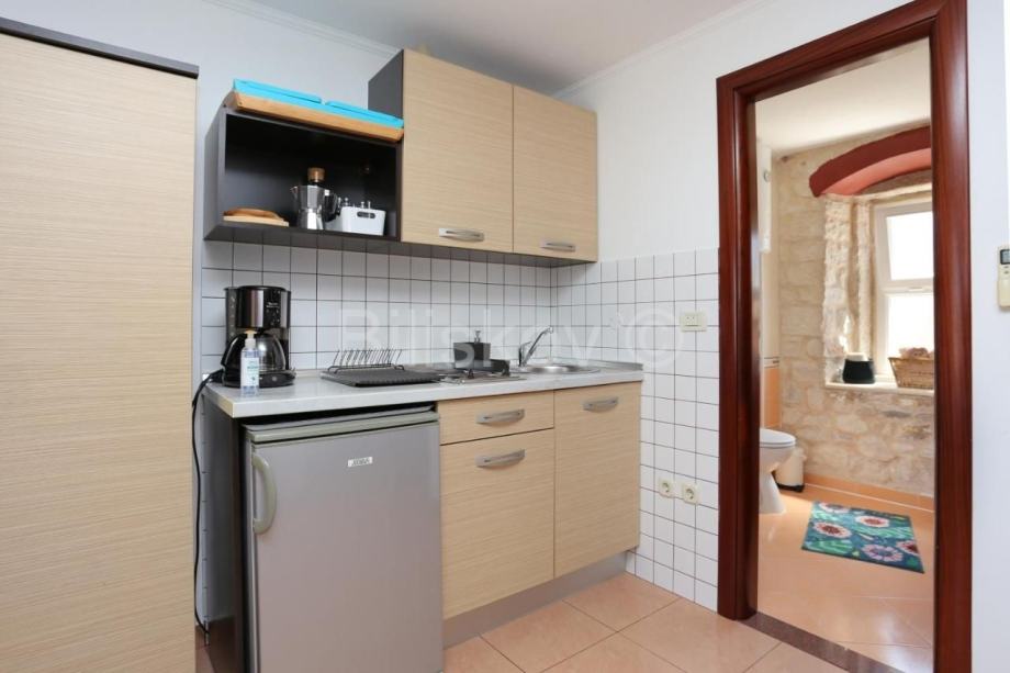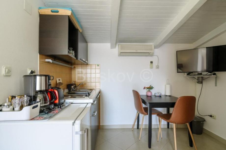 Od prvog kata nadalje, svaki kat nudi studio apartman od 30 kvadratnih metara, opremljen svime što vam je potrebno za udoban boravak. Svaki apartman sadrži prostranu kupaonicu, udoban krevet i potpuno opremljenu kuhinju s visokim stropovima koji pružaju osjećaj prozračnosti i otvorenosti. Također, balkoni pružaju mogućnost uživanja u jutarnjoj kavi ili večernjem opuštanju uz predivan pogled na more i okolicu.