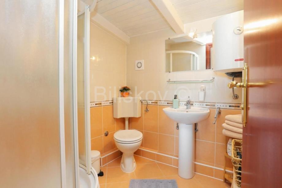 Osim što nudi prekrasan pogled, ova kuća također je u neposrednoj blizini trgovina, restorana, kafića i ostalih sadržaja, što omogućuje laku dostupnost svim potrebnim uslugama. Dodatna prednost je dobra povezanost s drugim područjima: udaljena je samo 1,5 km od poznate pješčane plaže "Copacabane" u Okrugu Gornjem, 5 km od aerodroma i 27 km od Splita.
