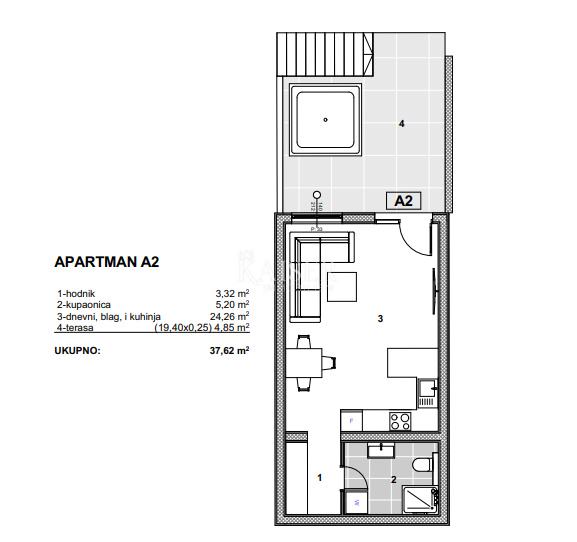 Ukupna obračunska površina stana iznosi 37,62 m², a zahvaljujući modernom dizajnu i kvalitetnoj izvedbi, pruža izuzetnu udobnost za boravak tijekom cijele godine ili za korištenje u turističke svrhe.