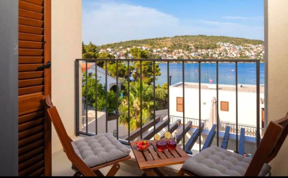 There are 4 rooms on the first floor, 3 of which have a balcony with a view of the sea. There are also two bathrooms on the first floor.