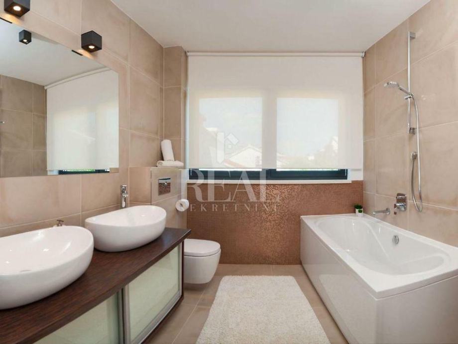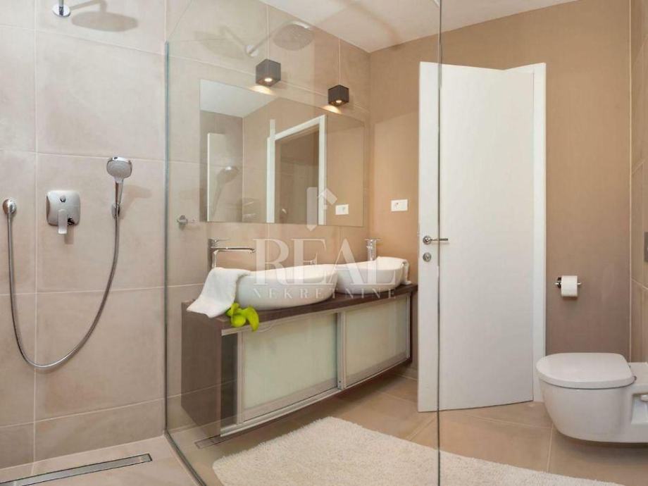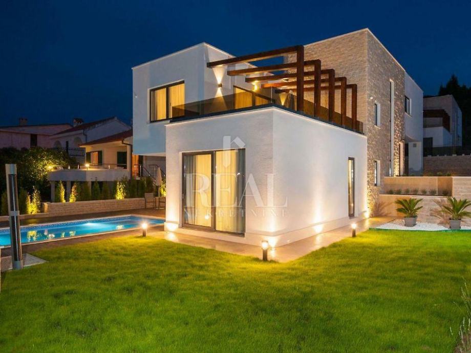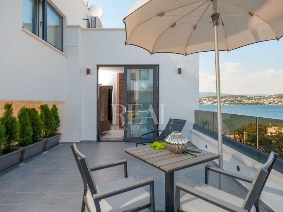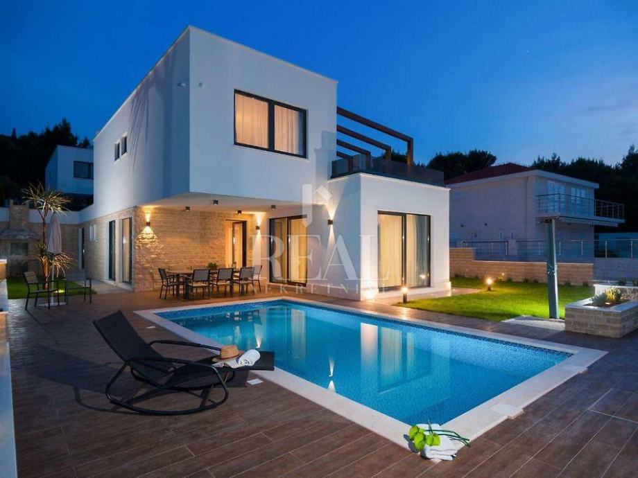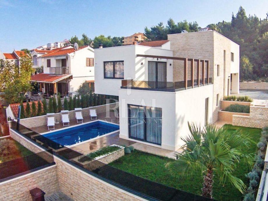 Prekrasna potpuno namještena vila svega 50 m od mora. Nekretnina ukupne površine 250 m2 sa šest spavaćih soba, šest kupaonica , vanjski bazen te unutarnji grijani bazen i sauna. Vila smještena na otoku Čiovu izdvojena od buke i gužve ali ipak u blizini svih bitnih sadržaja (restorani , kafići , trgovine...).Udaljena od centra grada Trogira 2,5km te od zračne luke Split 7 kilometara. Uređena plaža na svega par koraka. Nekretnina idealna za uživanje u vrućim ljetnim danima.