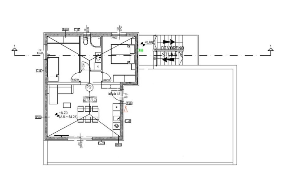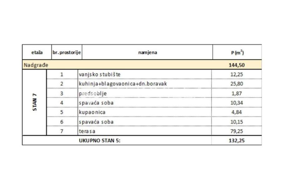 U neposrednoj blizini povijesnog grada Trogira, gradi se stambeni objekt sa 7 stanova južne orijentacije na pješačkoj udaljenosti od mora od cca 900 m. Zahvaljujući izoliranoj poziciji, lokacija objekta pruža izuzetan mir.Dvosoban penthouse na trećem katu neto korisne površine 72,81 m2 sastoji se od ulaznog prostora, kuhinje, blagovaonice, dnevnog boravka, kupaonice, dvije spavaće sobe i nenatkrivene terase površine od 79 m2 .Svi stanovi će biti opremljeni klima uređajima i podnim grijanjem u kupaonicama. Podne obloge će biti od keramičkih pločica. Na prozorima i vratima će biti postavljena PVC stolarija, troslojna stakla a vanjska termo izolacija će biti od 8 cm stiropora.U tijeku izgradnje postoji mogućnost individualnih dogovora oko uređenja interijera.Svaki apartman ima na raspolaganju 1 parking mjesto uključeno u cijenu.Ukupna neto korisna površina stana sa svim pripadcima iznosi 75,93 m2.Očekivani početak radova je kraj 2025 godine a useljenje krajem 2027 godine.Investitor je fizička osoba a način plaćanja je: rezervacija min 5.000 eura / 30 % prilikom potpisa predugovora / 30 % nakon završetka konstrukcijskih radova / 20 % nakon završetka fasade / 15 % nakon završetka unutrašnjosti / 5 % nakon ishođenja uporabne dozvole.Dodatne informacije - udaljenosti od važnijih lokacija:Plaža: 900 m / Trogir: 1400 m / zračna luka: 4 km / Split: 30 kmKupovina: 500 m / restoran: 800 m / ljekarna: 500 m / banka: 500 mZa sva dodatna pitanja stojim na raspolaganju....Za ovu nekretninu kontaktirajte agenta na broj telefona +385 99 400 6073.Više na Eurovilla.hr, ID: 117394Direktan link: https://eurovilla.hr/nekretnina/trogir-dvosoban-penthouse-na-trecem-katu-neto-korisne-povrsine-72-81-m2-s7/117394/-----... For this property contact our agent on telephone number +385 99 400 6073.More on Eurovilla.hr, ID: 117394Direct link: https://eurovilla.hr/en/property/trogir-two-bedroom-penthouse-on-the-third-floor-with-a-net-usable-area-of-72-81-m2-s7/117394/...