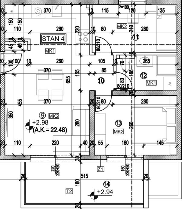 Trogir, dvosoban stan smješten u prizemlju stambenog objekta.Stan oznake Z6 – S4 ima funkcionalan raspored i sastoji se od dvije spavaće sobe, predsoblja, kupaonice, kuhinje s blagovaonicom i dnevnog boravka i balkona od 9.27 m2.Površina zatvorenog stambenog prostora iznosi 46.93 m2.U cijenu...