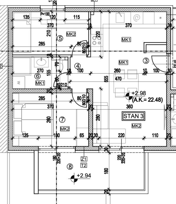 Trogir, dvosoban stan na prvoj etaži stambene zgrade s natkrivenim balkonom.Z5 – S3 - stan je funkcionalnog rasporeda, a se sastoji od dvije spavaće sobe, kupaonice, kuhinje s blagovaonicom te dnevnog boravka.Površina zatvorenog stambenog dijela iznosi 46,97 m², a površina južno oirjentiranog natkrivenog balkona je 9, 27 m².U cijenu je uključeno jedno vanjsko parkirno mjesto.Početak gradnje je planiran za jesen 2026. Godine.Nekretnina je pogodna za miran obiteljski život u blizini svih potrebnih sadržaja ( trgovačkog centra Marisa, vrtića, ... ) , odmor ili kao investicija za turistički najam. Za sve dodatne informacije stojimo vam na raspolaganju....