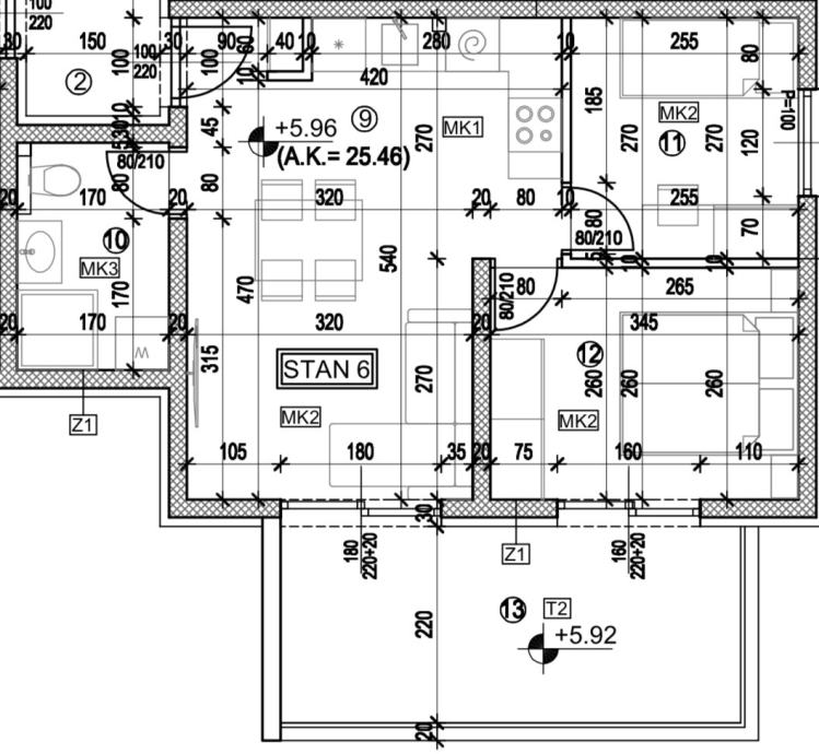 Trogir, dvosoban stan smješten na prvom katu stambenog objekta.Stan oznake Z5 – S6 ima funkcionalan raspored i sastoji se od dvije spavaće sobe, kupaonice, kuhinje s blagovaonicom i dnevnog boravka s izlazom na natkriveni balkon od 11.33 m2.Površina zatvorenog stambenog prostora iznosi 40 m2.U...