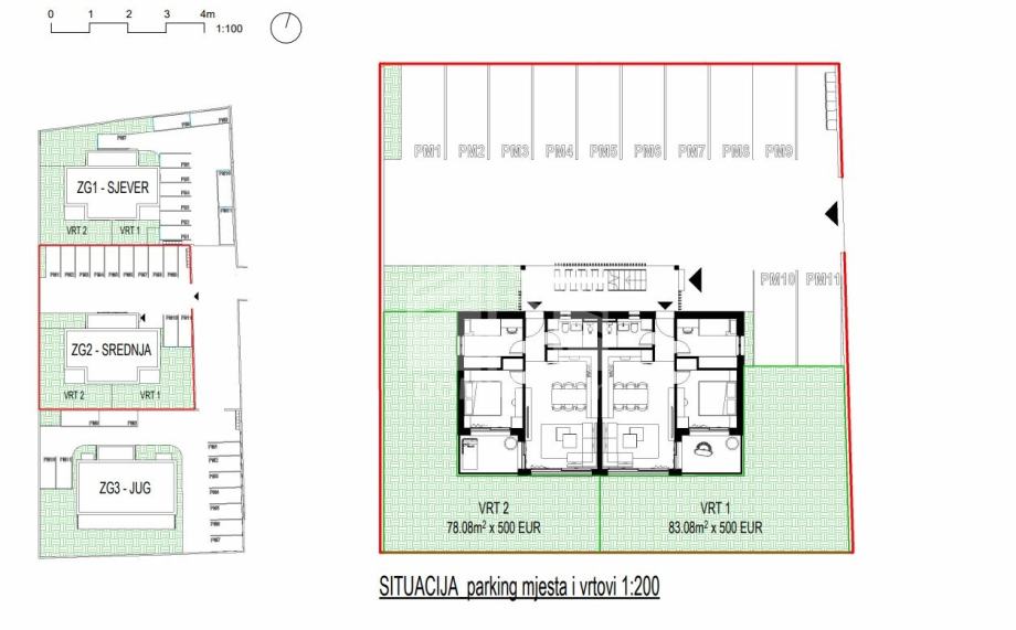 Pripada mu jedno vanjsko parkirno mjesto, te vrt površine od 78,08 m2.
