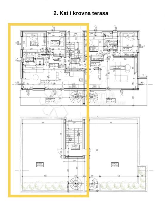 Posebna atrakcija ovog stana je prostrana krovna terasa površine 73m2 koja će vas očarati spektakularnim pogledom na okolni krajolik. To je savršeno mjesto za opuštanje, sunčanje ili organiziranje nezaboravnih druženja s prijateljima.Dodatno, stan uključuje i balkon površine 19m2 te dva parking mjesta, što vam omogućuje praktičnost i sigurnost.