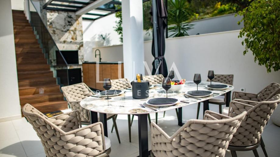 Ova izuzetna nekretnina savršen je izbor za one koji traže moderan dom s vrhunskim sadržajima i idiličnim okruženjem, bilo za privatno uživanje ili kao investiciju u luksuzni turistički najam.