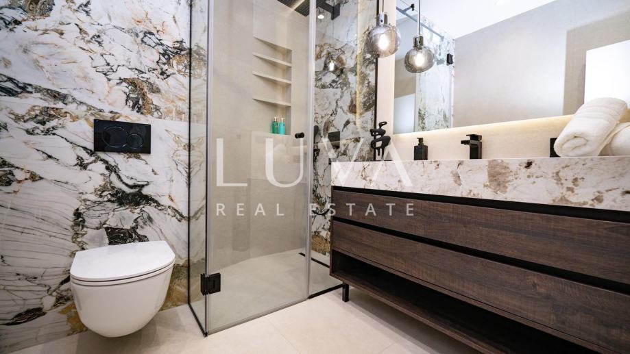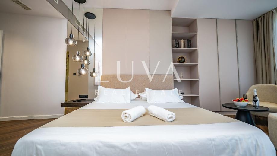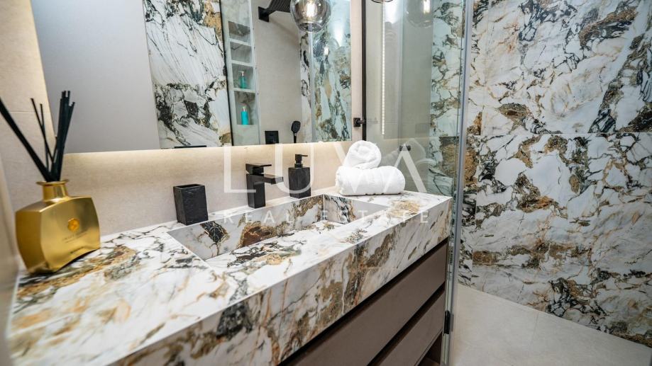 • U potpunosti je namještena vrhunskim dizajnerskim namještajem rađenim po mjeri