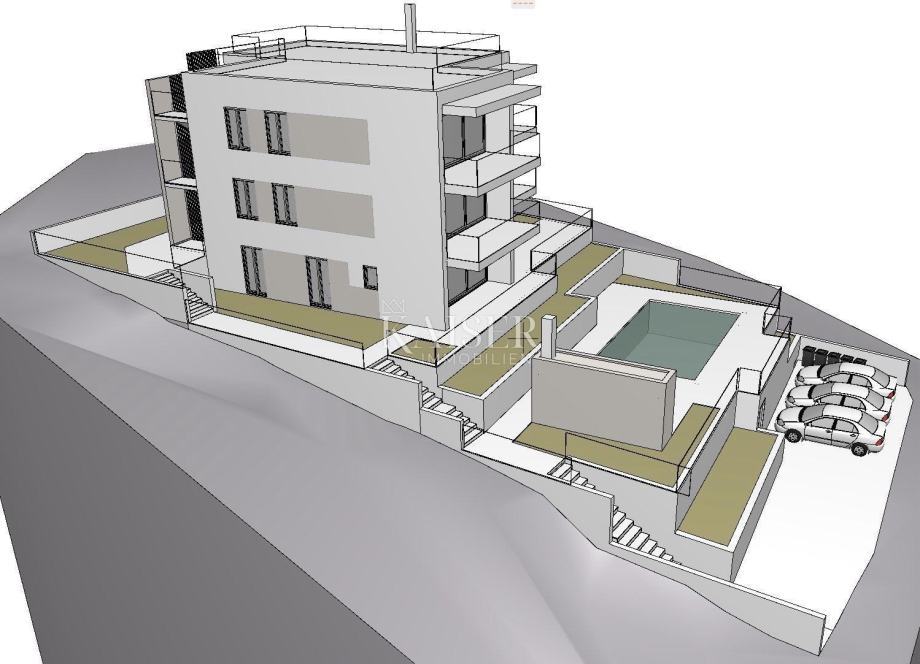 Odobreni projekt: Moderna vila (bruto površina ~400 m²) s 5 stambenih jedinica.