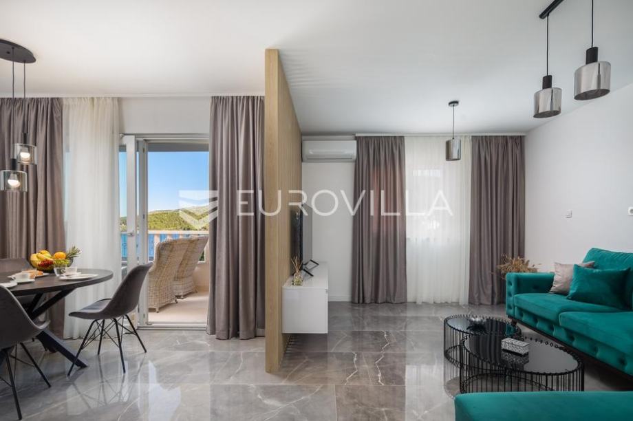 Trogir, Marina, potpuno namješten dvosoban stan s pravom korištenja zajedničkog vrta, bazena i teretane - prvi red do mora.Smješten je na etaži prizemlja, a sastoji se od hodnika, kupaonice, wc-a, dvije spavaće sobe, kuhinje s blagovaonicom, dnevnog boravka i natkrivene terase s predivnim otvorenim pogledom na more i Trogirski zaljev. Površina zatvorenog stambenog dijela je 60 m2, a površina terase je 7, 40 m2. U cijenu je uključeno jedno nenatkriveno vanjsko parkirno mjesto površine 12, 9 m2.U dvorištu objekta je kultivirani vrt, dječje igralište, grijani bazen sa sunčalištem, dok je iza objekta privatni parking s punjačem za električni automobil. Također, na korištenje svim stanovima je odlično opremljena teretana smještena u prizemlju objekta.Marina je romantično manje mjesto, smješteno u zapadnom dijelu Trogirskog zaljeva uz Jadransku magistralu, a sastoji se od nekoliko zaselaka. Idealna je za opuštanje i uživanje, te nudi potpuni doživljaj Mediterana.Za sva ostala pitanja stojim na raspolaganju....