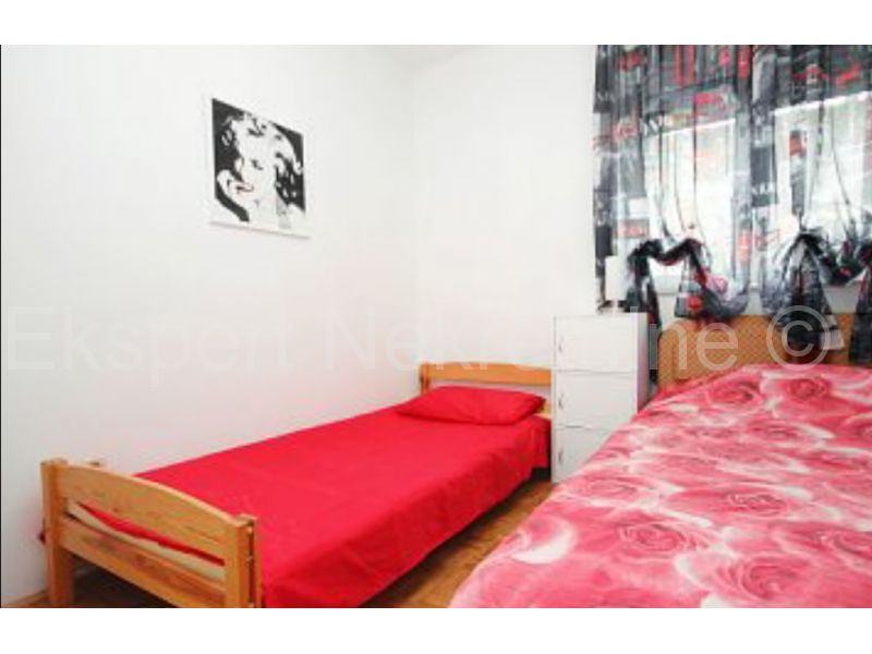 Trogir,Mastrinka,MIševac,komforan dvosoban stan 97 m2,sa velikom terasom (22m2) samo 100 metara udaljen od mora i plaže.Stan se nalazi na 1.katu manje stambene zgrade te ima dvije spavaće sobe,hodnik,kupatilo, wc, kuhinju sa blagovaonicom,veliki dnevni boravak te veliku lođu od 22m2 sa koje se pruža pogled na more i obližnju plažu.Stan se nalazi u otkupu (cca 10 000 eura) koji prodavatelj isplaćuje prilikom prodaje.Vlasništtvo uredno.