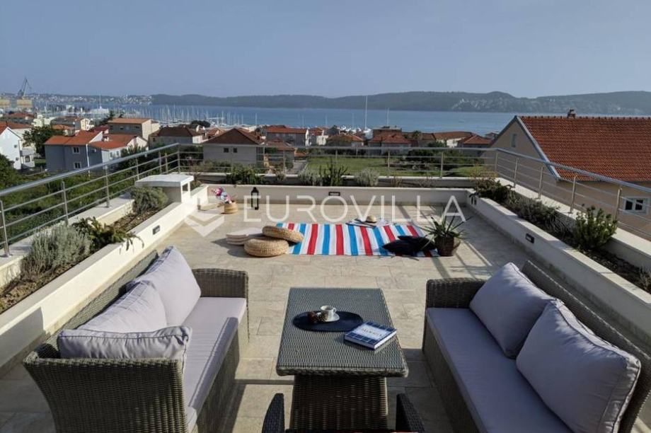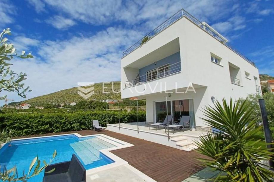 Prekrasna vila nedaleko od Trogira, udaljena par minuta hoda od plaže. Vila se proteže na dvije etaže i 240 m2 stambene površine na parceli od 516 m2. Sastoji se od otvorenog koncepta kuhinje, dnevnog boravka i blagovaonice s direktnim izlazom na vanjsku terasu i dvorište s bazenom. Na katu su...