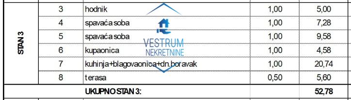 * Stambena površina: 52 m² (47 m² zatvoreni stambeni prostor + 5 m² balkon)