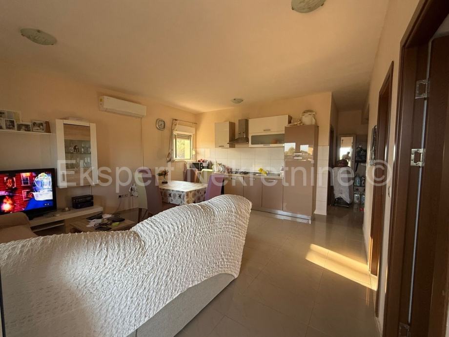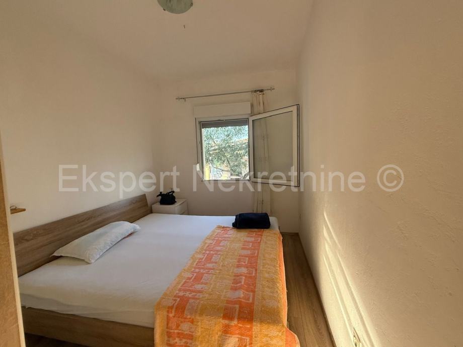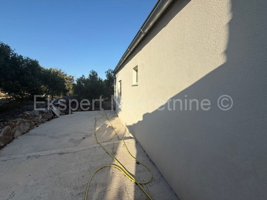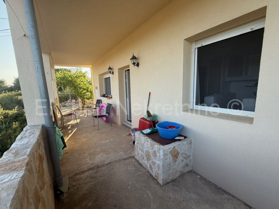 Kuća površine 83 m2 se sastoji od tri spavaće sobe, wc, kupaone, hodnika te dnevnog boravka s kuhinjom i blagovanom s izlazom na terasu s koje se pruža pogled na more.