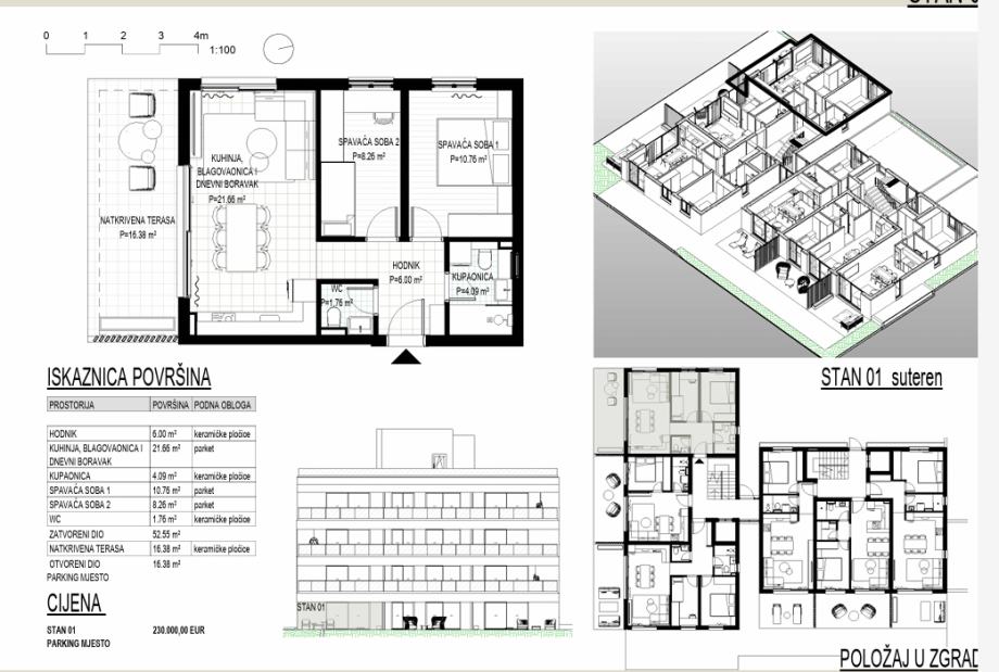 U popularnom odmaralištu srednje Dalmacije, Okrugu Gornjem na Čiovu gradi se stambeni objekt s 24 apartmana na pješačkoj udaljenosti od plaže od 370 m.Objekt se gradi na 5 etaža (jedna podzemna etaža i četiri nadzemne etaže ) uz iskoristivu krovnu terasu koja pripada stanovima na zadnjem katu. Objekt će imati lift.Apartman S1 u prizemlju (u projektu označen kao suteren) orijentacije jug se sastoji od dnevnog prostora površine 21 m2 (kuhinja, blagovaonica i dnevni boravak), ulaznog prostora od 6 m2, dvije spavaće sobe površina 10 m2 odnosno 8 m2, kupaonice površine 4 m2, toaleta površine 2 m2 i natkrivene terase površine od 16 m2.Svi apartmani će biti opremljeni podnim grijanjem i klima uređajima u dnevnom prostoru i jednoj spavaćoj sobi a podne obloge će biti od keramičkih pločica prve klase. Prozori će biti od PVC-a s komaricama i roletama na struju a vanjska fasadna izolacija će biti od stiropora debljine 10 cm.U fazi izgradnje još je moguće dogovarati uređenje interijera.Za svaki apartman u prizemlju je predviđeno jedno vanjsko parking mjesto.Očekivani početak radova je ljeto 2026 godine a useljenje početak 2028 godine. Trenutačno se primaju rezervacije a nakon početka radova potpisuje se predugovor.Način plaćanja: rezervacija min 5.000 eura / 30 % prilikom potpisa predugovora / 30 % nakon završetka konstrukcijskih radova / 15 % nakon završetka fasade / 15 % nakon završetka unutrašnjosti / 10 % nakon ishođenja uporabne dozvole.Kako je otok Čiovo svojevrstan produžetak grada Trogira, nudi pregršt mogućnosti za odmor, rekreaciju i kupanje te razgledavanje mnogobrojnih povijesnih spomenika.Mediteranska vegetacija, arhipelag s malim slikovitim otočićima, blaga klima i predivne plaže u skrovitim zaljevima čine ovo mjesto poželjnom destinacijom za stanovanje I odmor.Dodatne informacije - udaljenosti od važnijih lokacija:Plaža: 370 m / Trogir: 4,5 km / zračna luka: 8 km / Split: 30 kmKupovina: 150 m / restoran: 150 m / ljekarna: 200 m / banka: 300 mZa sva dodatna pitanja stojim na raspolaganju....Za ovu nekretninu kontaktirajte agenta na broj telefona +385 99 400 6073.Više na Eurovilla.hr, ID: 428840Direktan link: https://eurovilla.hr/nekretnina/trogir-okrug-gornji-apartman-s1-u-izgradnji-neto-korisne-povrsine-60-74-m2/428840/-----... For this property contact our agent on telephone number +385 99 400 6073.More on Eurovilla.hr, ID: 428840Direct link: https://eurovilla.hr/en/property/trogir-okrug-gornji-apartment-s1-under-construction-with-a-net-usable-area-of-60-74-m2/428840/...