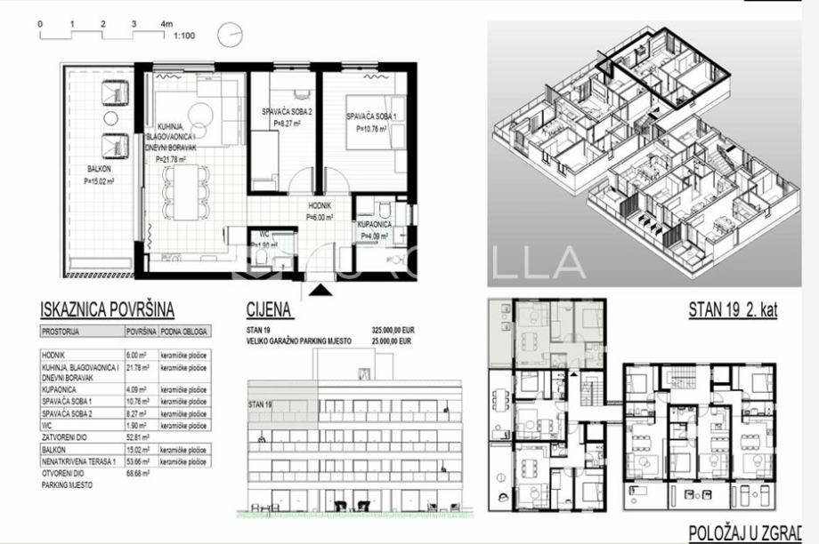 U popularnom odmaralištu srednje Dalmacije, Okrugu Gornjem na Čiovu gradi se stambeni objekta s 24 apartmana na pješačkoj udaljenosti od plaže od 370 m.Objekt se gradi na 5 etaža (jedna podzemna etaža i četiri nadzemne etaže ) uz iskoristivu krovnu terasu koja pripada stanovima na zadnjem katu. Objekt će imati lift.Apartman S19 na trećem katu (u projektu označen kao drugi kat) orijentacije jug se sastoji od ulaznog prostora površine 6 m2, dnevnog prostora površine 21 m2 (kuhinja, blagovaonica i dnevni boravak), dvije spavaće sobe površina 10 m2 odnosno 8 m2, kupaonice površine 4 m2, toaleta površine 2 m2, natkrivene terase površine 15 m2 i nenatkrivene krovne terase površine 53 m2.Svi apartmani će biti opremljeni podnim grijanjem i klima uređajima u dnevnom prostoru i jednoj spavaćoj sobi a podne obloge će biti od keramičkih pločica prve klase. Prozori će biti od PVC-a s komaricama i roletama na struju a vanjska fasadna izolacija će biti od stiropora debljine 10 cm.U fazi izgradnje još je moguće dogovarati uređenje interijera.Apartmanu S19 pripada veliko garažno parking mjesto po cijeni od 25.000 eura.Očekivani početak radova je ljeto 2026 godine a useljenje početak 2028 godine. Trenutačno se primaju rezervacije a nakon početka radova potpisuje se predugovor.Način plaćanja: rezervacija min 5.000 eura / 30 % prilikom potpisa predugovora / 30 % nakon završetka konstrukcijskih radova / 15 % nakon završetka fasade / 15 % nakon završetka unutrašnjosti / 10 % nakon ishođenja uporabne dozvole.Kako je otok Čiovo svojevrstan produžetak grada Trogira, nudi pregršt mogućnosti za odmor, rekreaciju i kupanje te razgledavanje mnogobrojnih povijesnih spomenika.Mediteranska vegetacija, arhipelag s malim slikovitim otočićima, blaga klima i predivne plaže u skrovitim zaljevima čine ovo mjesto poželjnom destinacijom za stanovanje I odmor.Dodatne informacije - udaljenosti od važnijih lokacija:Plaža: 370 m / Trogir: 4,5 km / zračna luka: 8 km / Split: 30 kmKupovina: 150 m / restoran: 150 m / ljekarna: 200 m / banka: 300 mZa sva dodatna pitanja stojim na raspolaganju....Za ovu nekretninu kontaktirajte agenta na broj telefona +385 99 400 6073.Više na Eurovilla.hr, ID: 364119Direktan link: https://eurovilla.hr/nekretnina/trogir-okrug-gornji-apartman-s19-na-trecem-katu-neto-korisne-povrsine-73-7-m2/364119/-----... For this property contact our agent on telephone number +385 99 400 6073.More on Eurovilla.hr, ID: 364119Direct link: https://eurovilla.hr/en/property/trogir-okrug-gornji-apartment-s19-on-the-third-floor-with-a-net-usable-area-of-73-7-m2/364119/...