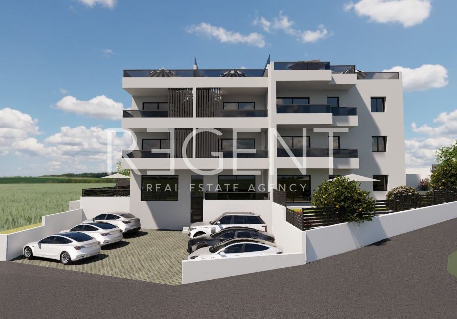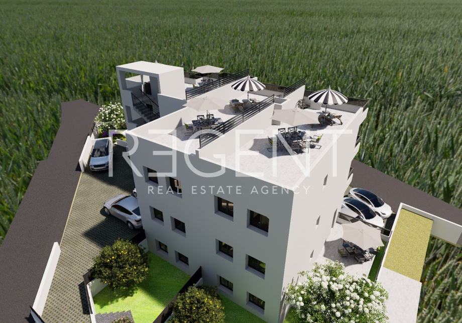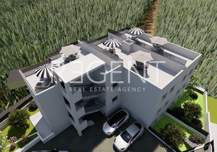 Posredujemo pri prodaji trosobnog stana sa loggiom smještenog na 2. katu manje stambene zgrade.Stan se se odlikuje promišljenim rasporedom, a sastoji se od zatvorenog stambenog dijela, balkona sa stubištem i prostrane privatne krovne terase. Stan ima ukupnu neto korisnu površinu od 66,29 m², a sastoji se od:Hodnika – 3,32 m²Dnevnog boravaka s kuhinjom i blagovaonicom – 21,11 m²Kupaonice – 4,33 m²Spavaće soba 1 – 10,40 m²Spavaće soba 2 – 8,82 m²Balkona – 8,82 m²Krovne terase – 64,40 m²Stan je opremljen podnim grijanjem u svim prostorijama i temperatura se regulira zasebno za svaku prostoriju putem digitalnih termostata. U dnevnom boravku nalazi se aluminijska klizna stijenka koja omogućuje izlaz na balkon. Svaki stan ima predviđenu ugradnju klima uređaja s trial sustavom, koji omogućuje hlađenje više prostorija odjednom. U hodniku, kupaonici, kuhinji i dnevnom boravku postavlja se keramika, dok su u spavaćim sobama predviđeni laminatni podovi – uz mogućnost da kupac zatraži keramiku u svim prostorijama dok je zgrada još u fazi gradnje.U cijenu je uključeno vanjsko parking mjesto.Zgrada se nalazi na atraktivnoj poziciji, s približno 150 metara udaljenosti od mora sa sjeverne strane te oko 400 metara sa južne strane, ovisno o pravcu pristupa.Plaćanje je predviđeno po fazama gradnje, završetak radova u jesen 2025. te useljenje do kraja 2025. godine.Za više informacija, kao i razgled, slobodno nas kontaktirajte!Za više informacija, kontaktirajte našeg agenta na brojeve telefona: